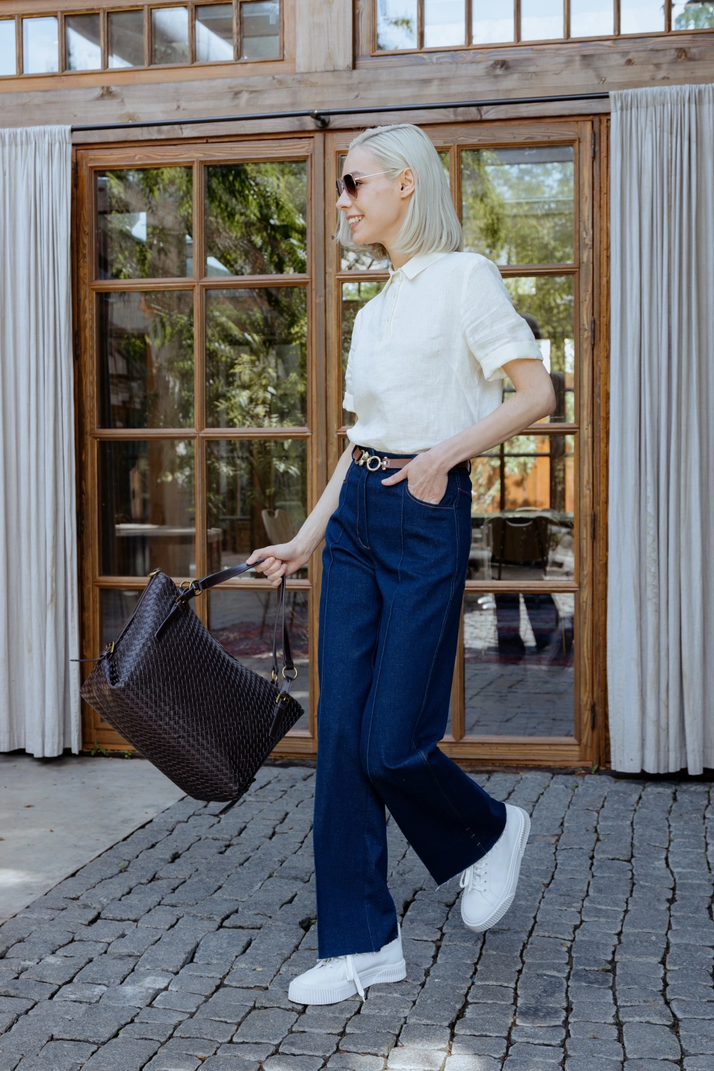 Вертикальная отстрочка, зрительно вытягивает силуэт. Джинсы рассчитаны на все четыре типа фигуры.