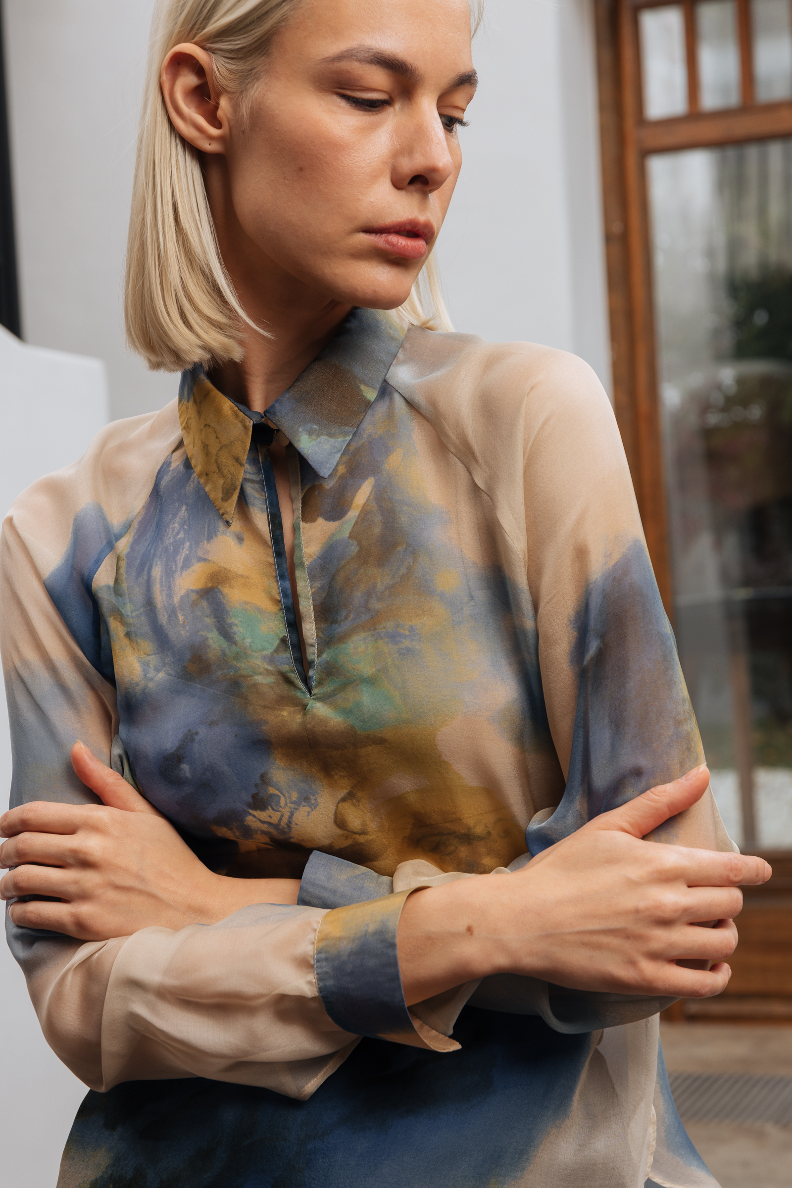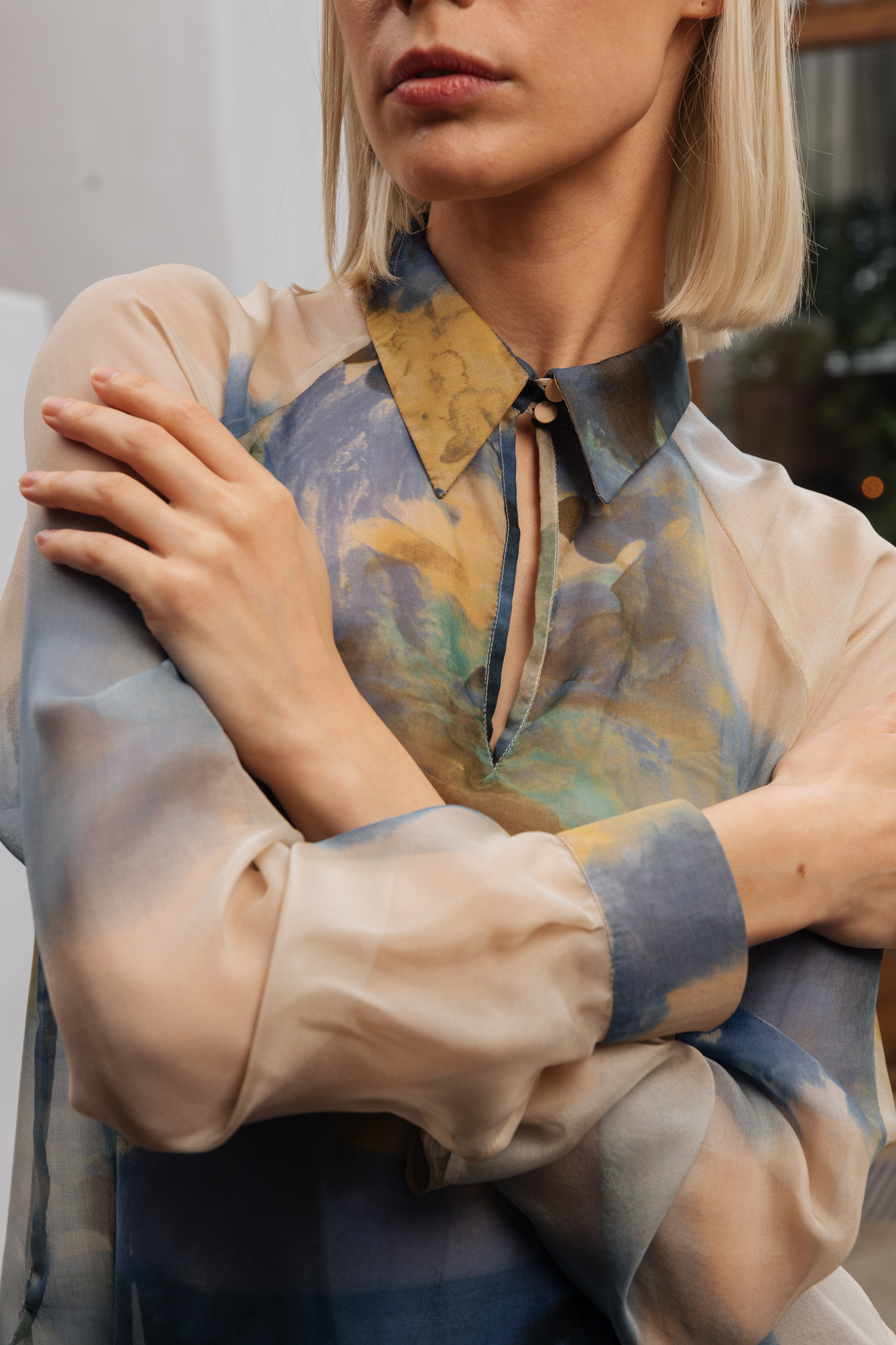 Шелк требует к себе особого отношения во всём – от кроя до эксплуатации. Все срезы мы тщательно обработали самым деликатным запошивочным швом. Инструкцию по уходу за блузой вы найдете внутри упаковки.