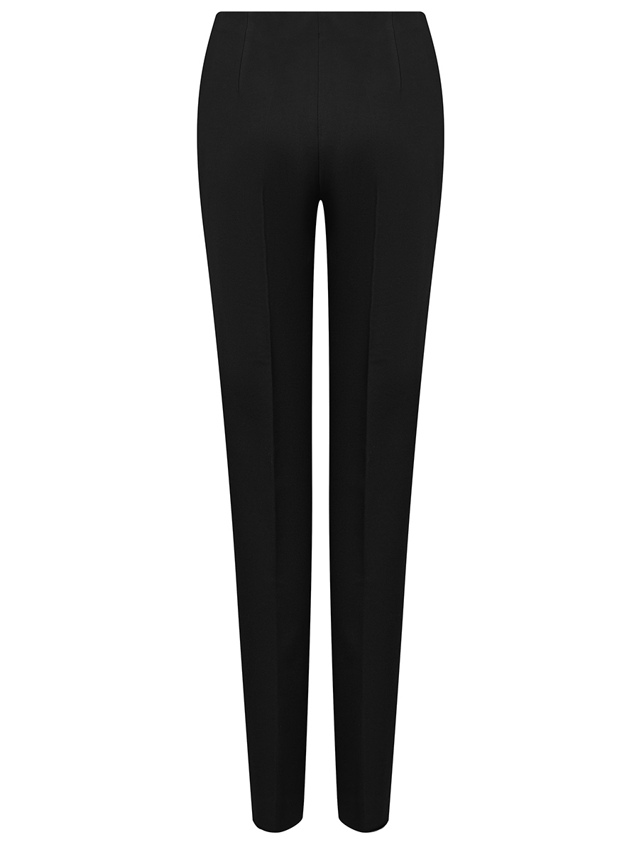 Черные трикотажные брюки из плотного джерси с содержанием нейлона от PERCE NEIGE SAISONS. Модель полуприлегающего кроя на внутренней резинке с простроченными стрелками, которые визуально вытягивает силуэт. Изделие с имитацией гульфика. Нейлон в составе не позволит деформироваться брюкам в процессе носки. Брюки отличаются универсальностью и легко сочетаются с рубашками, поло или повседневными топами.