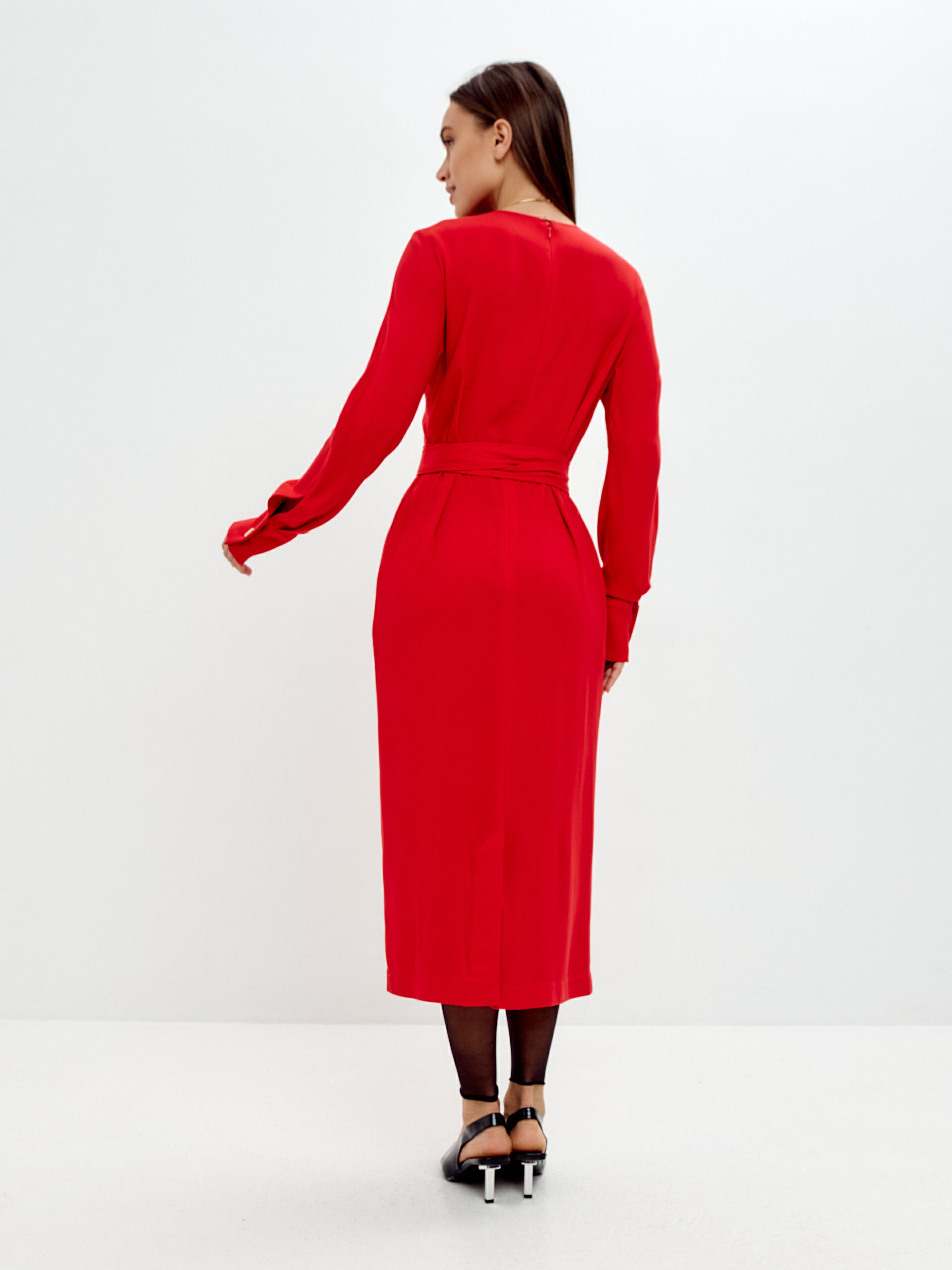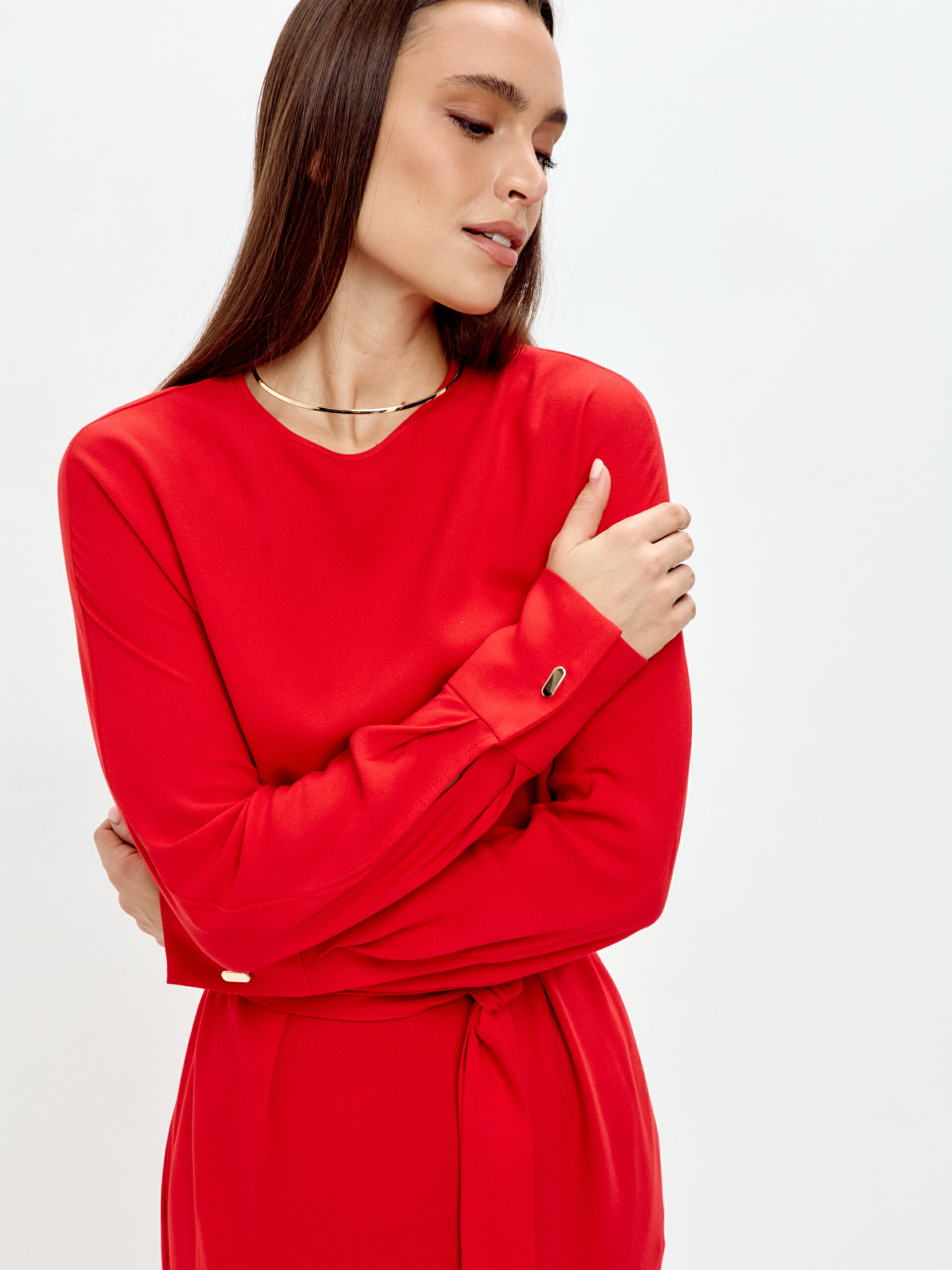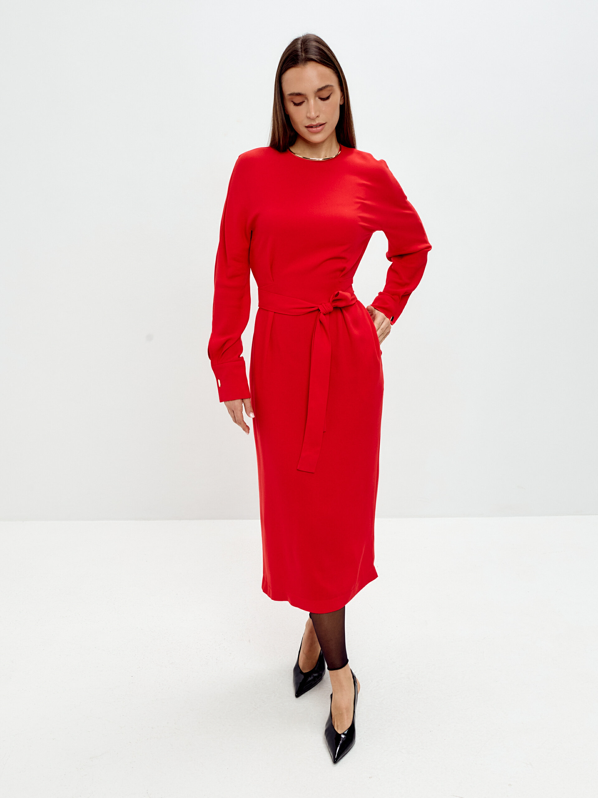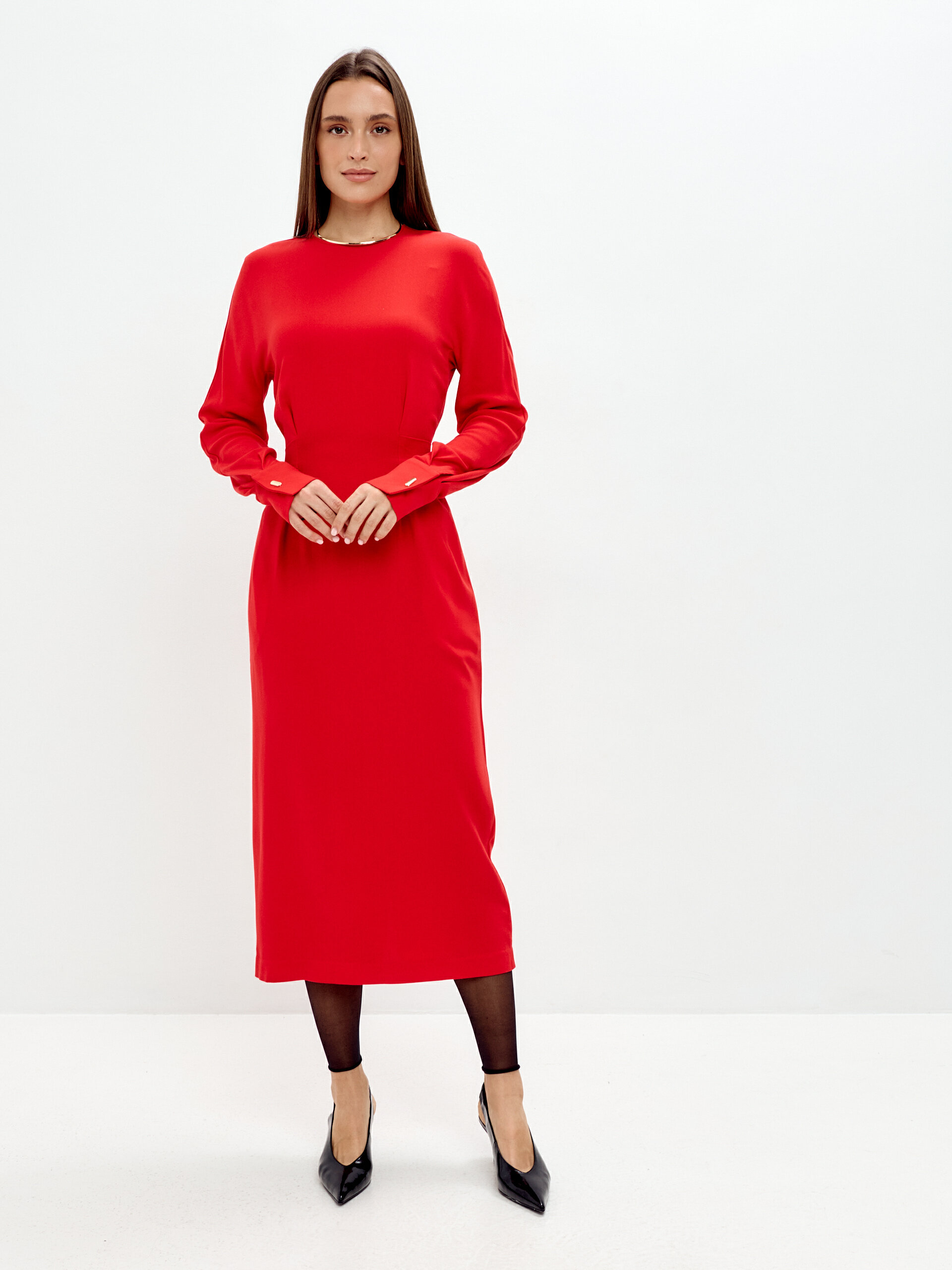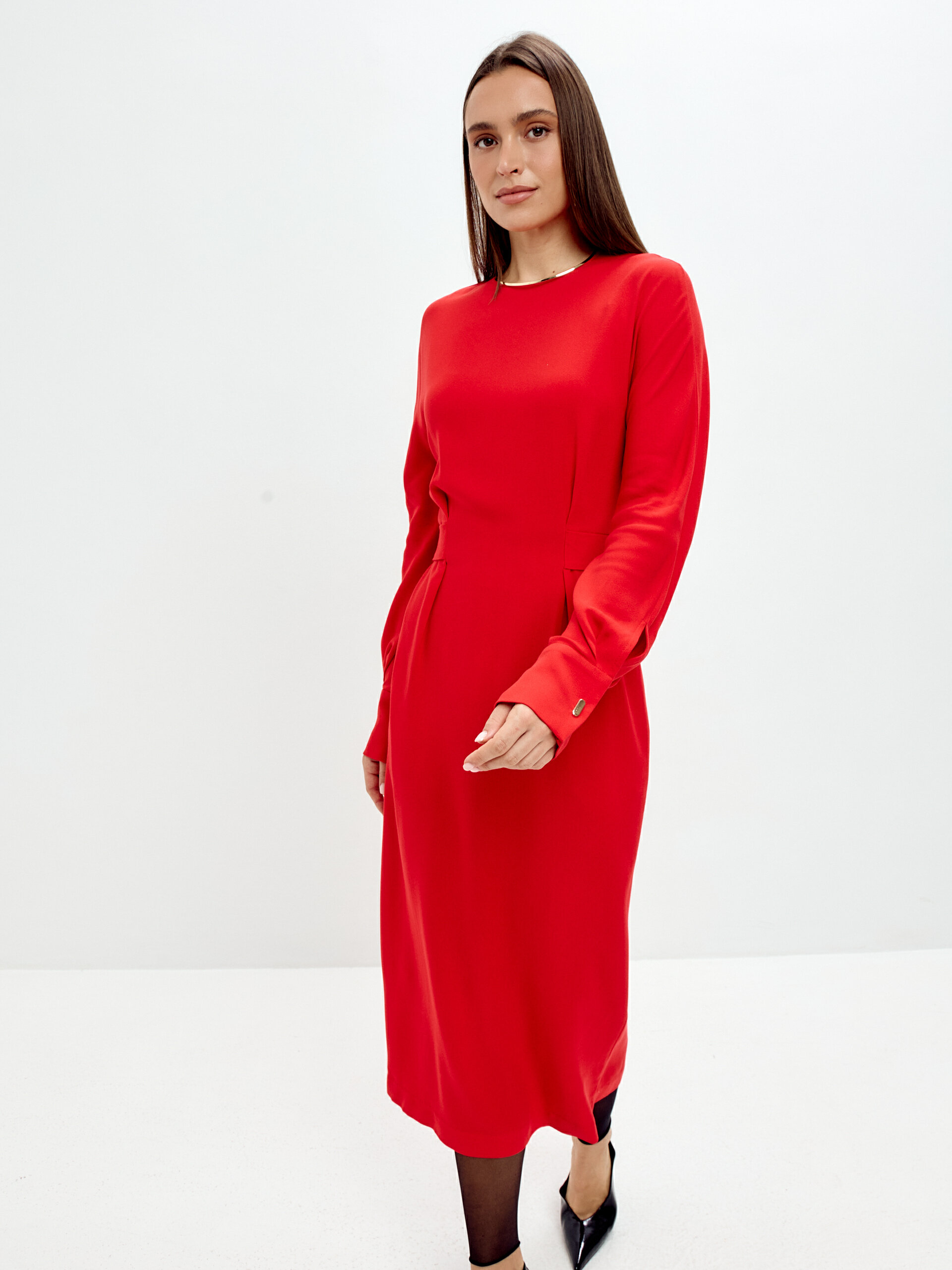 Цвет выходит на первый план - потрясающий, пламенеющий коралл! Мягкий полуприлегающий силуэт платья с долей свободы.