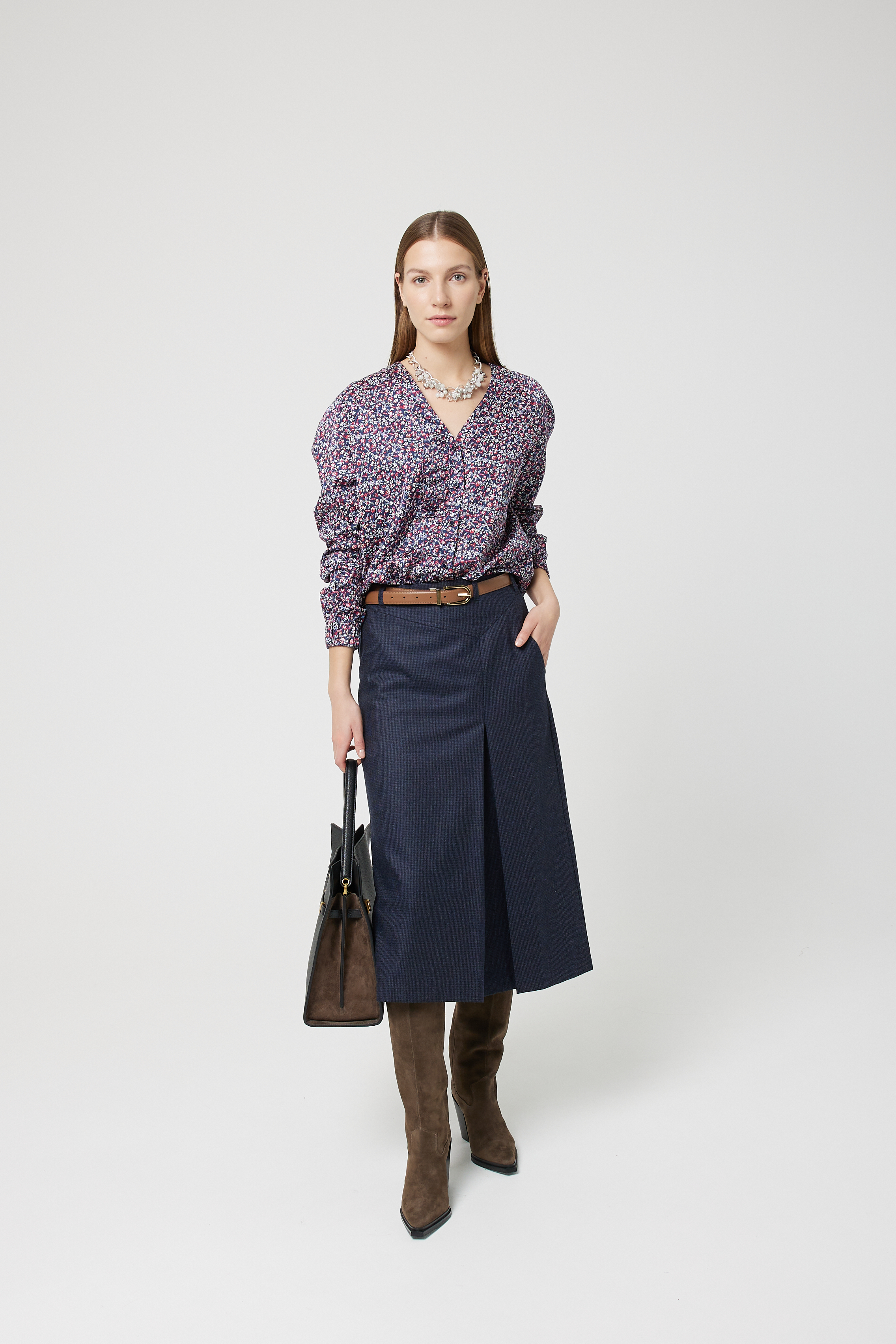 Must have сезона осень/зима - юбка трапеция. Юбка комфортного кроя, даёт свободу в движении, спереди ассиметричная кокетка, которая продолжает динамику во встречной складке, всё работает на красоту и комфорт. Выполнена из шерсти производство Италии, фабрика “ALFA-Fi”, меланжевая в клетку.