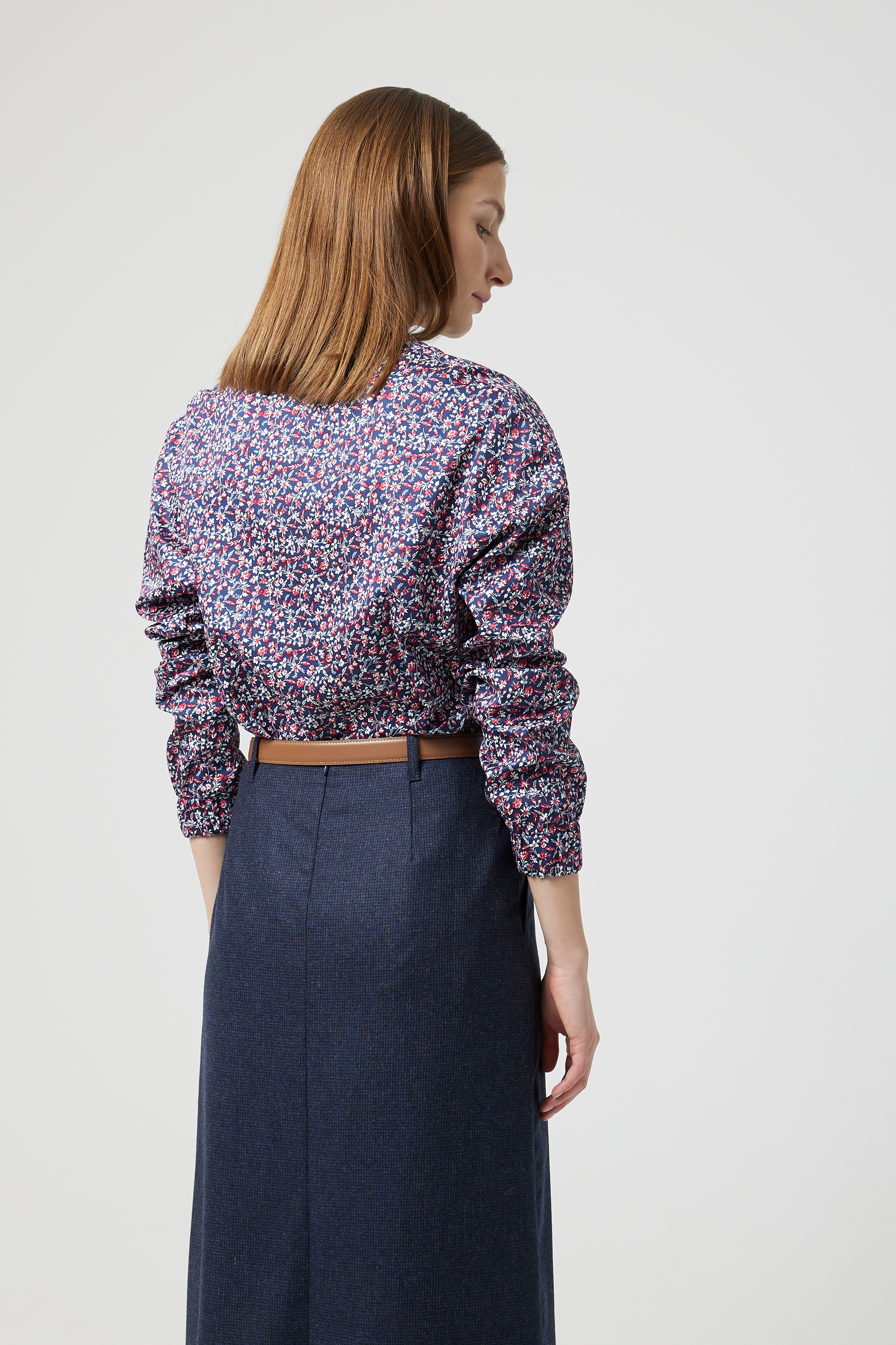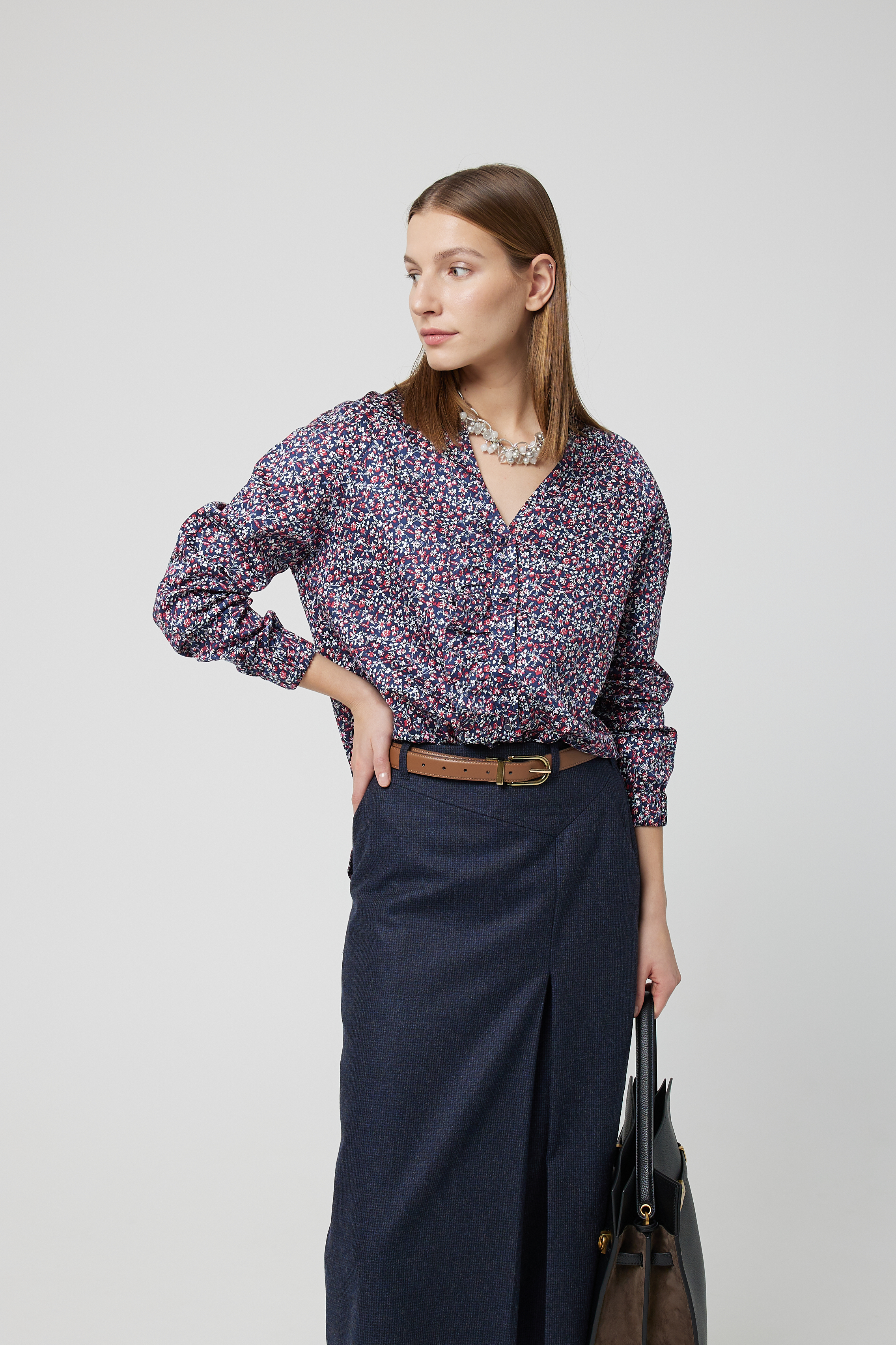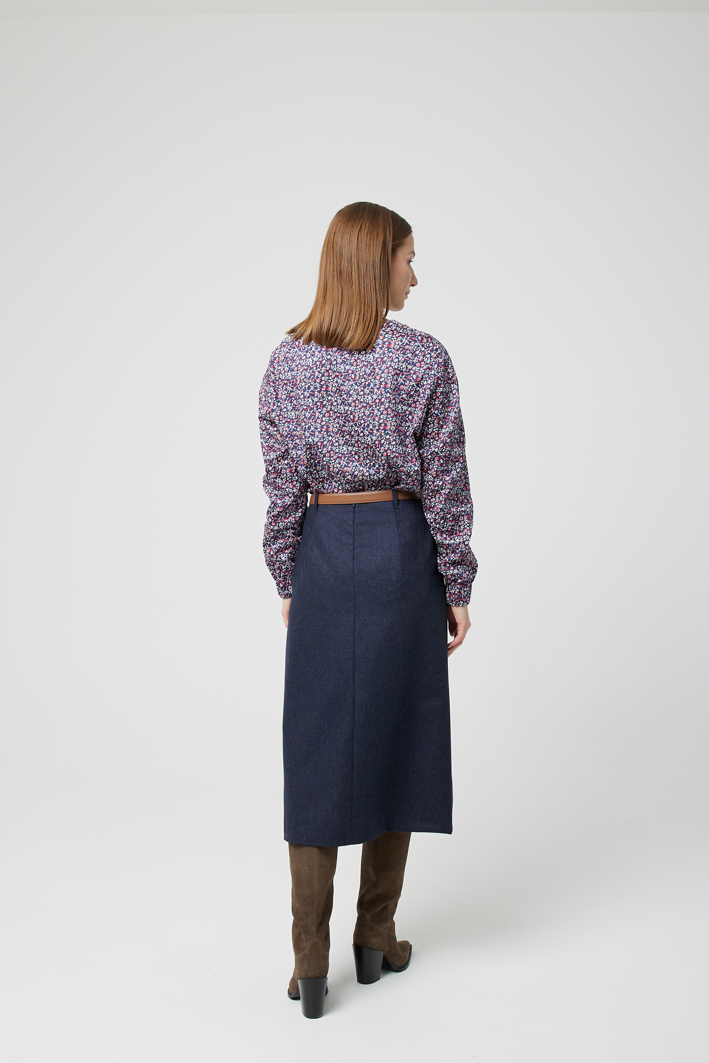 Мини клетка, соединяет два цвета, серый стальной и тёмно-синий. Юбка на подкладке из 100% вискозы. Застёгивается на потайную молнию, есть шлёвки для пояса, удобный карманы с отрезным бочком.