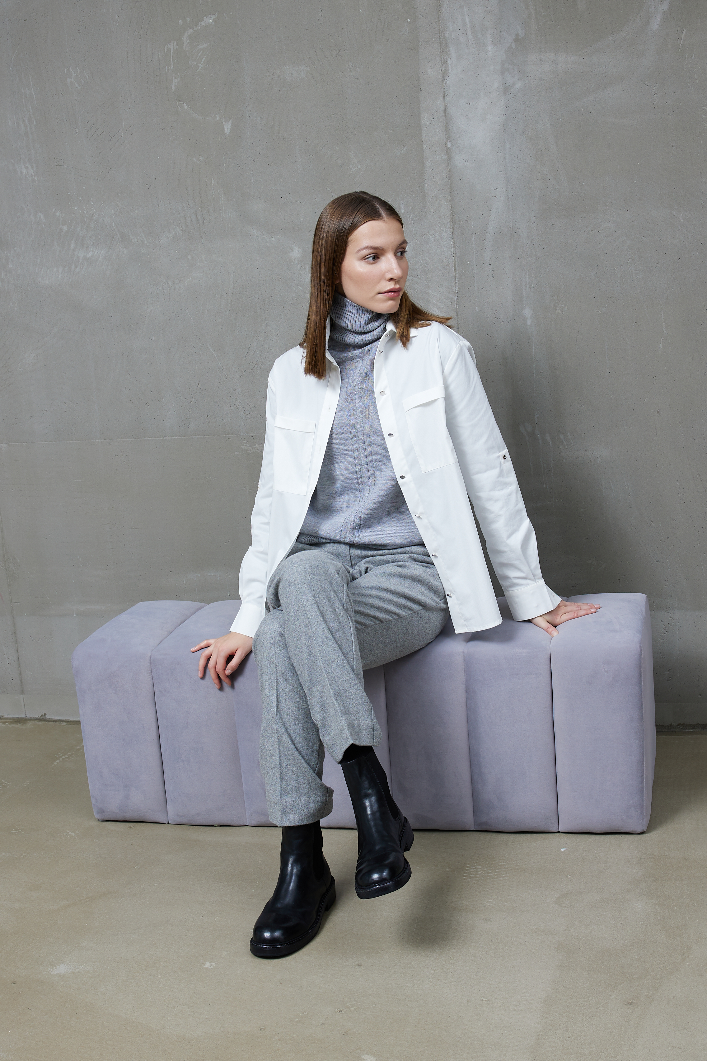 Выполнены из итальянской шерсти фабрики ALFA-Fi. Брюки спереди на подкладке из вискозы.