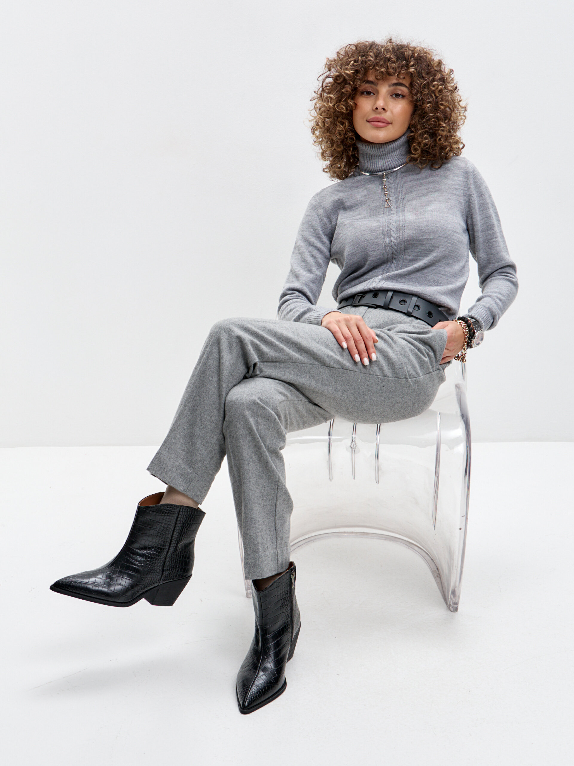 Цвет серый меланж, очень мягкий и благородный.
