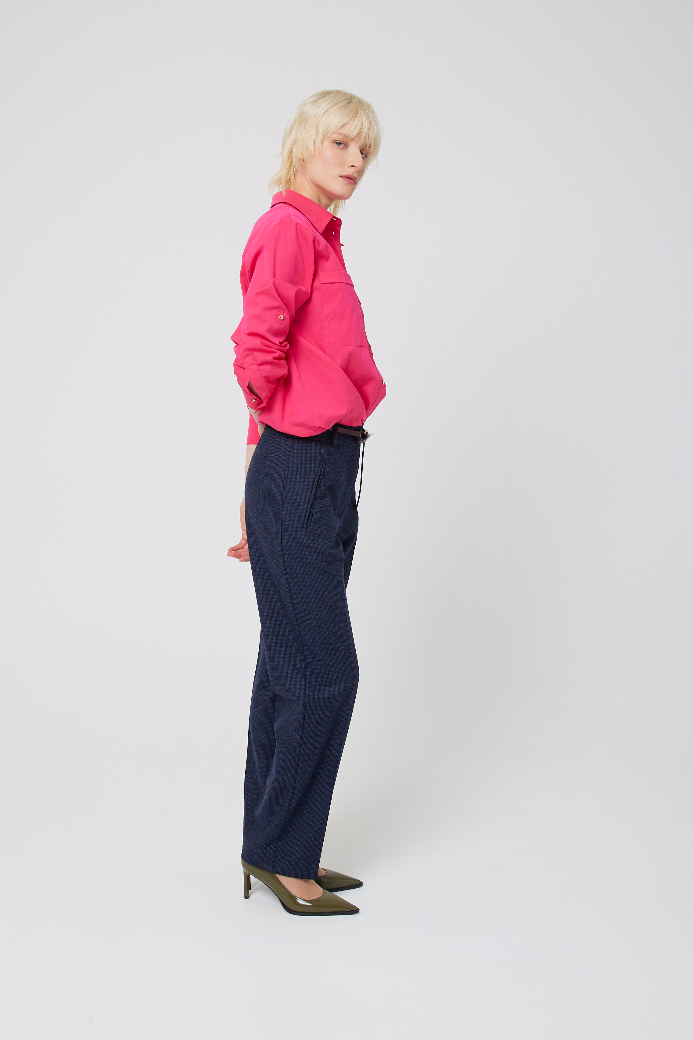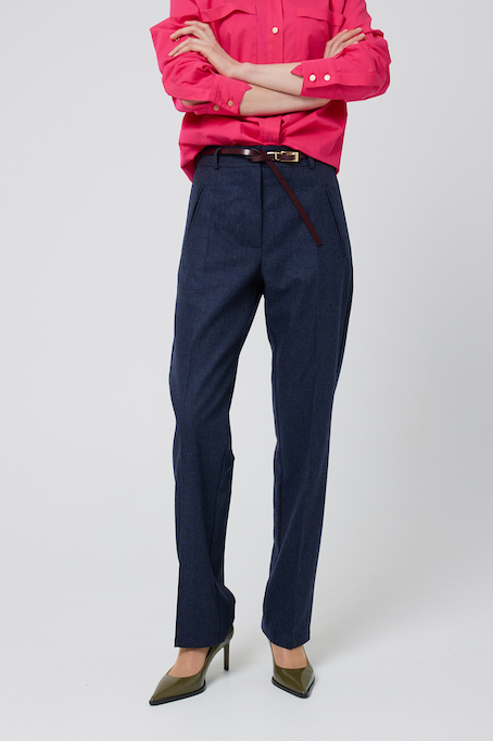 Деловые брюки в городской стилистике. Посадка талевая, силуэт прямой.