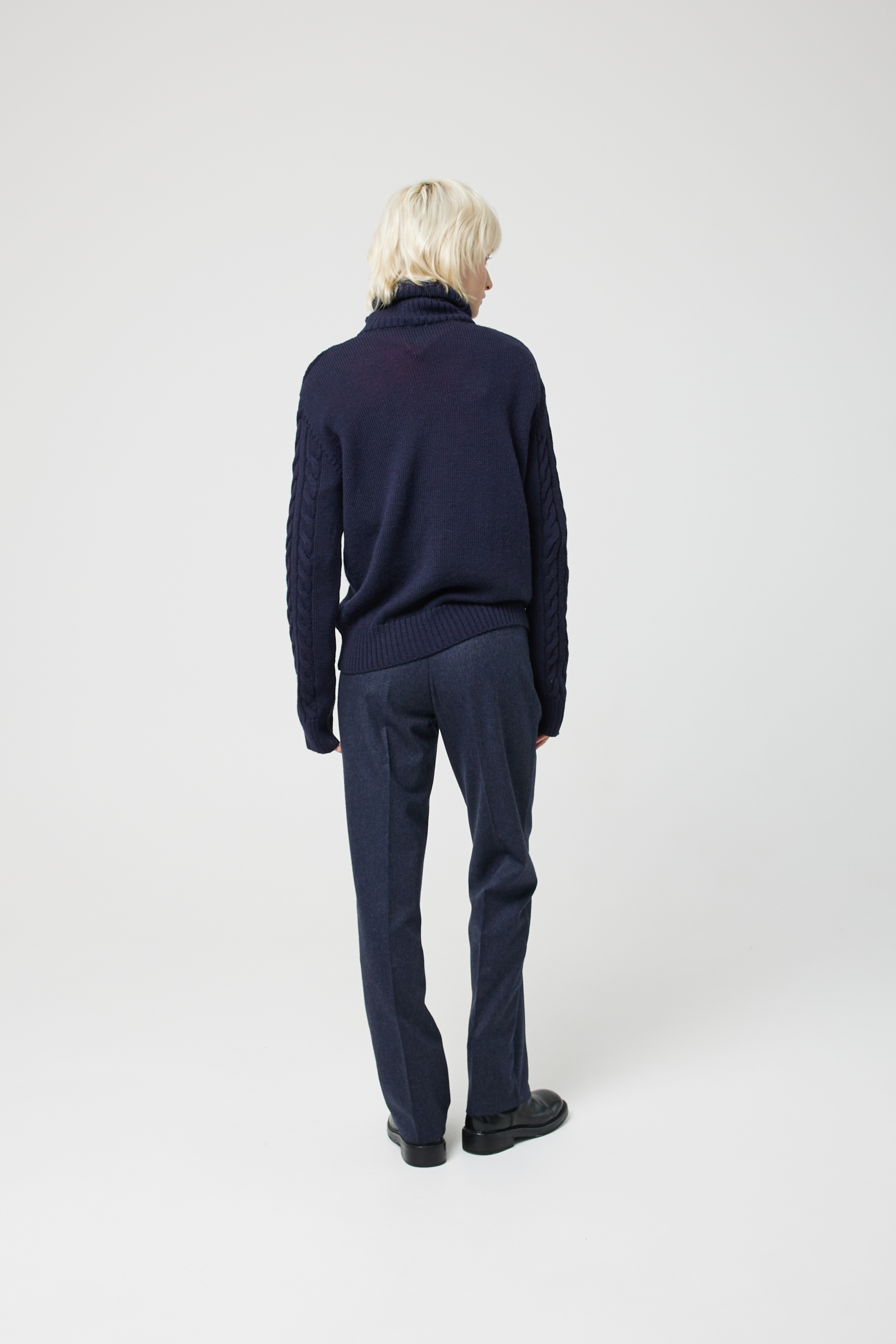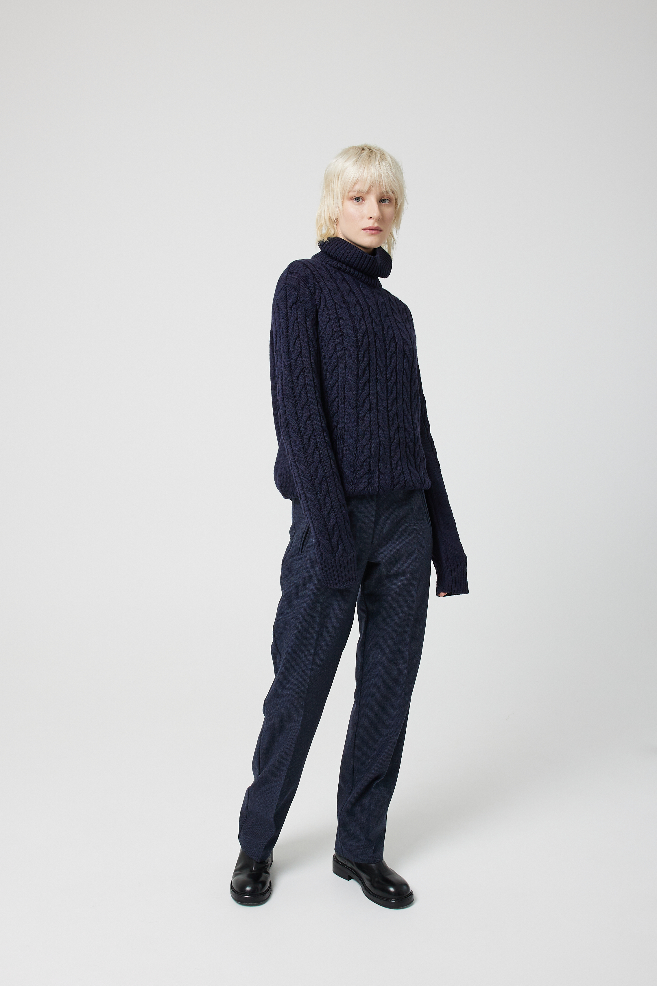 Брюки выполнены из итальянской ткани. В составе 60% шерсть, 30% пэ 10% полиэфир, такой состав делает брюки тёплыми, комфортными в носке, можно стирать и легко гладить. Передние половинки брюк на подкладке из вискозы.