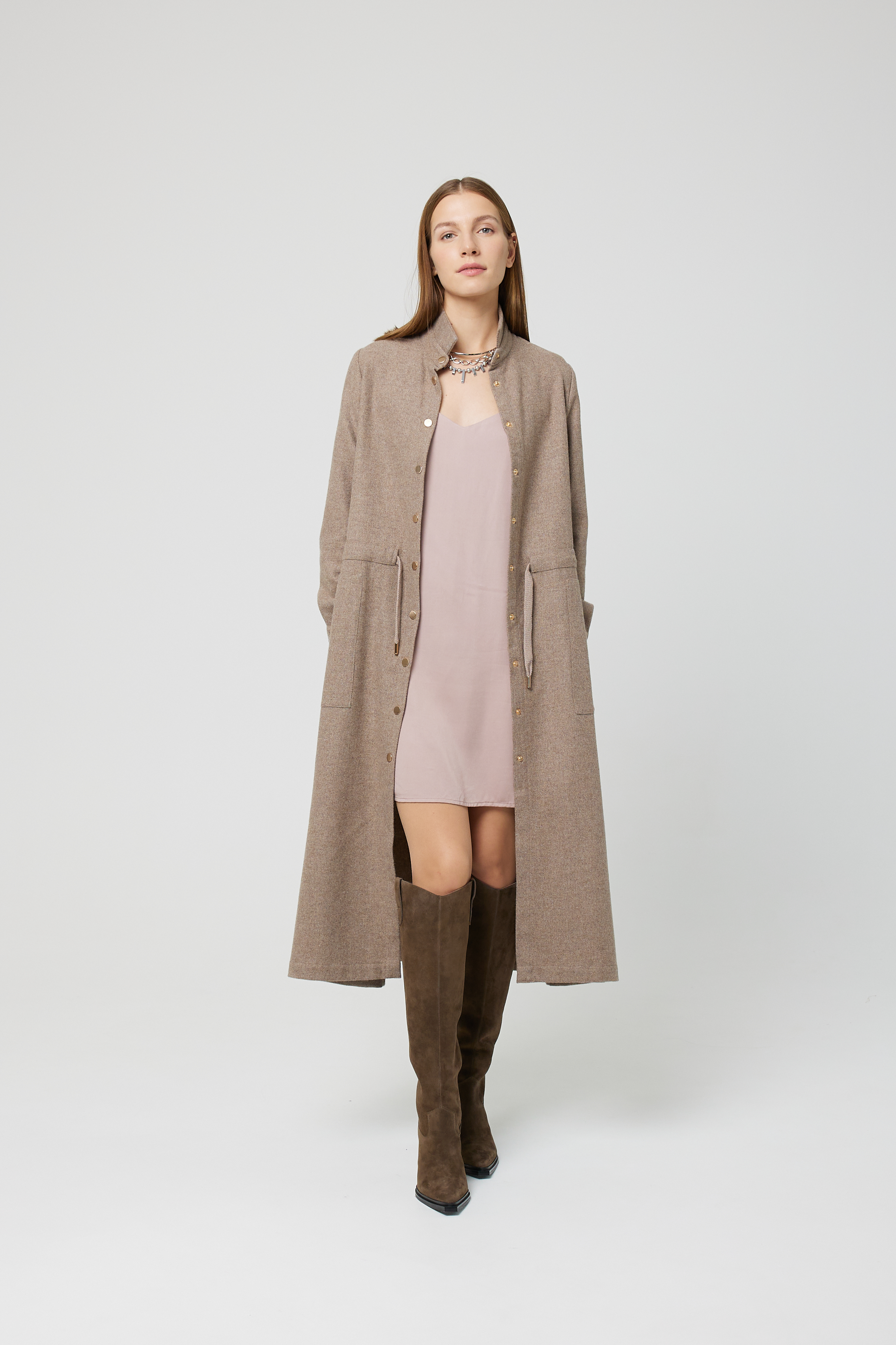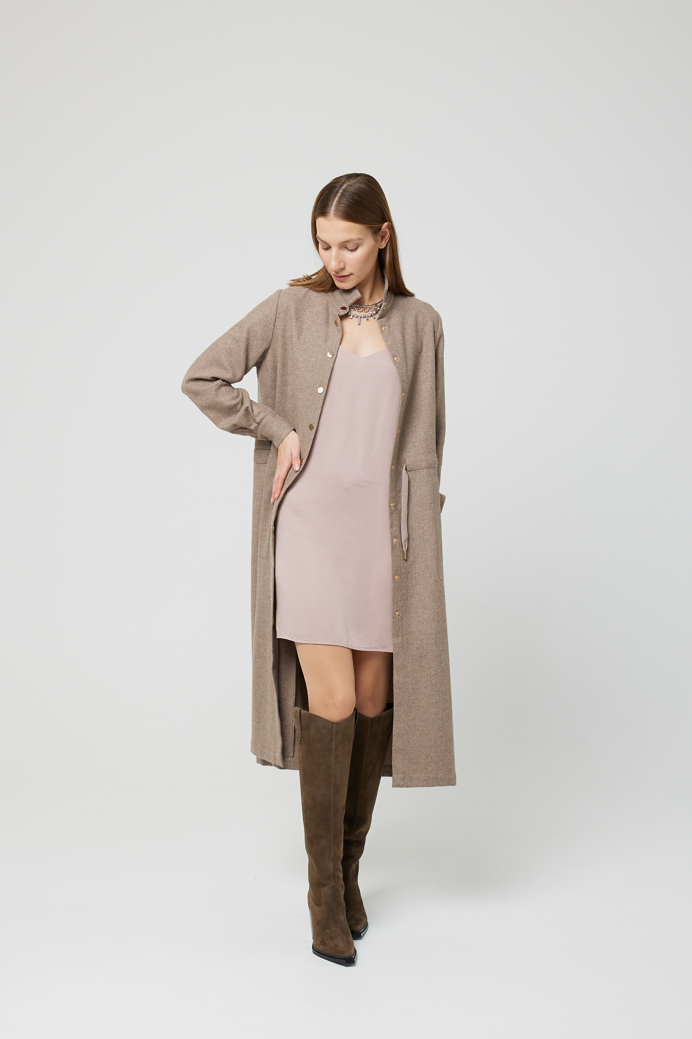 Платье застёгивается спереди, как рубашка, на металлические кнопки.