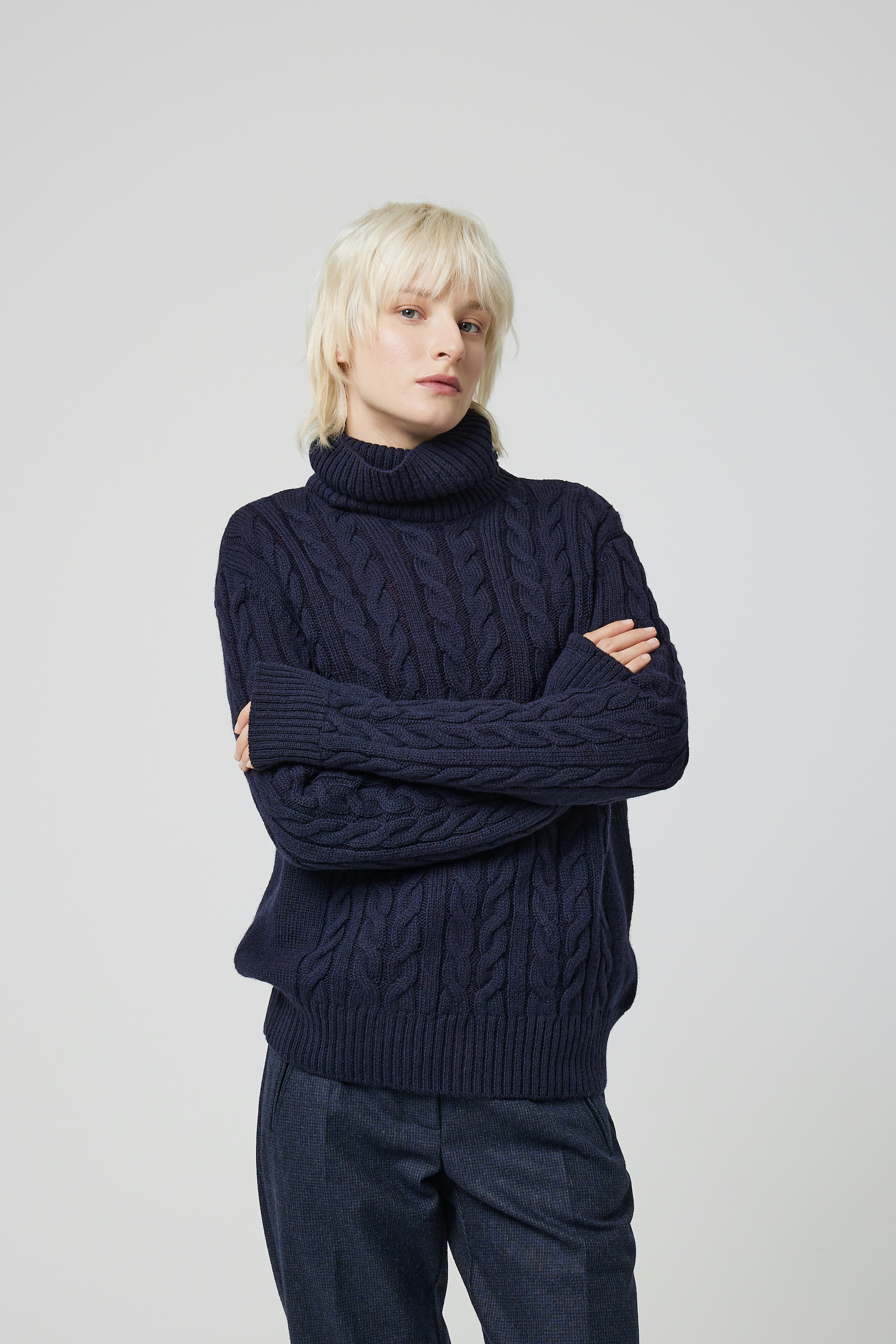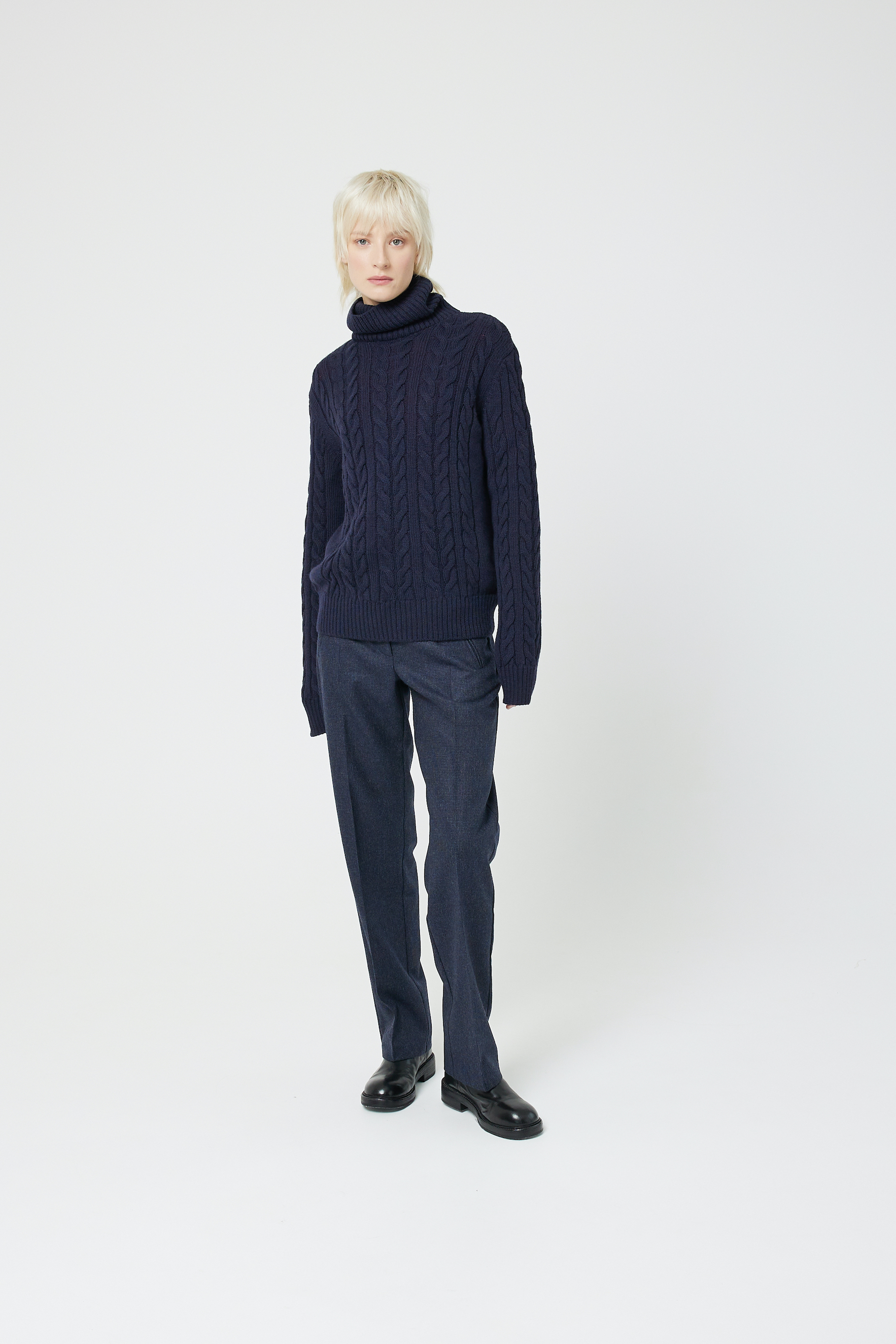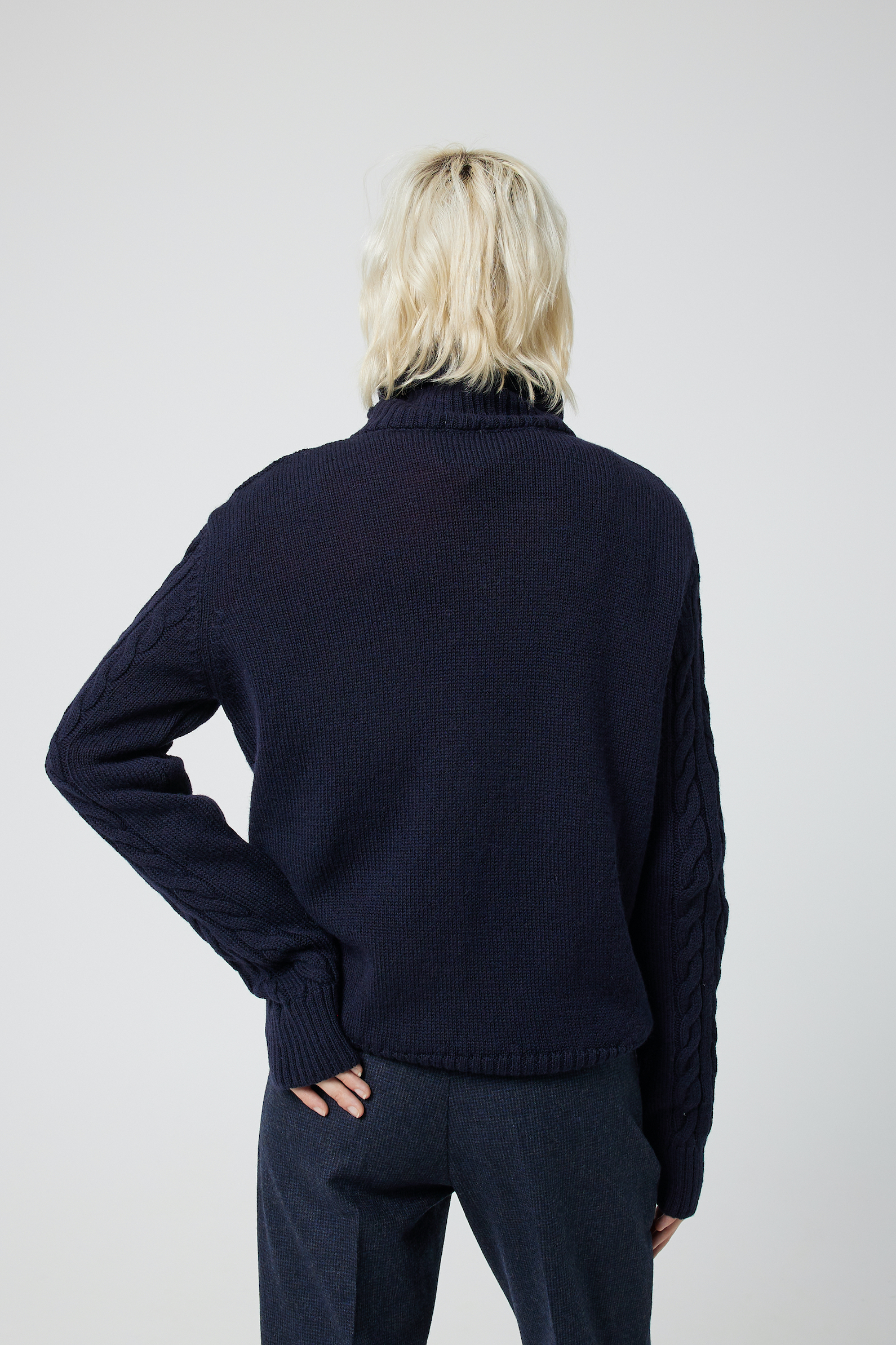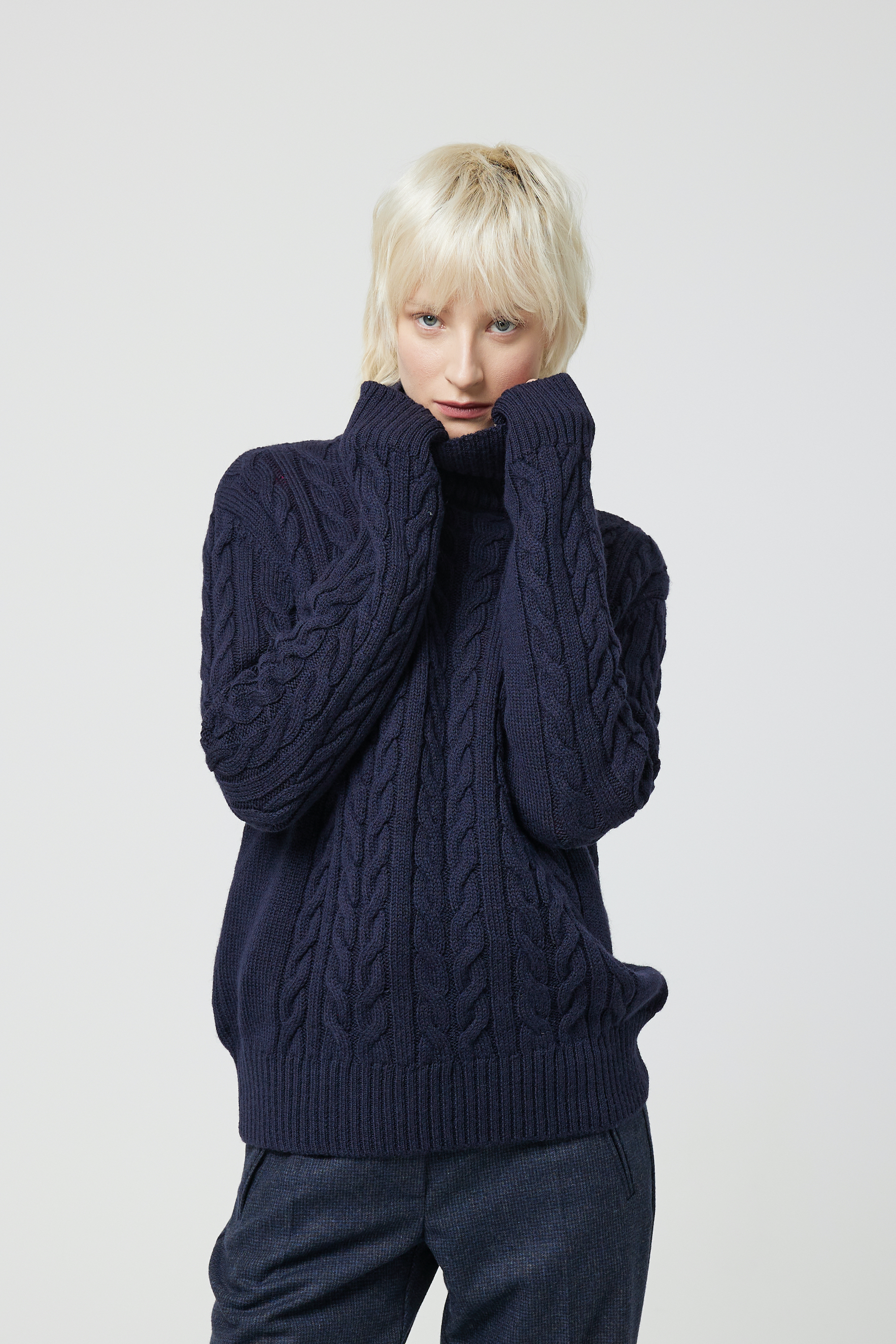 Свитер представлен в двух цветах, чернильно-синем и песочном.