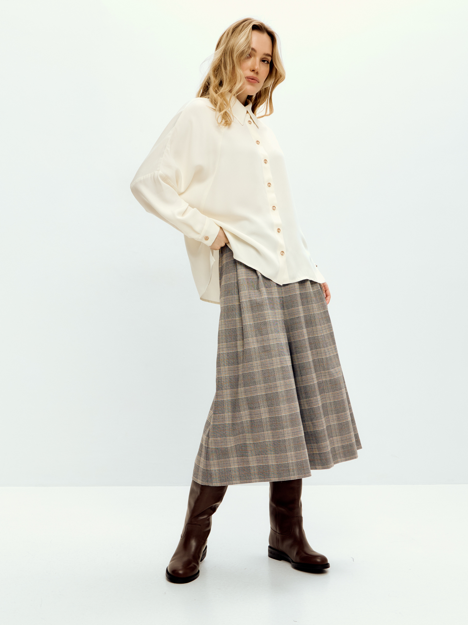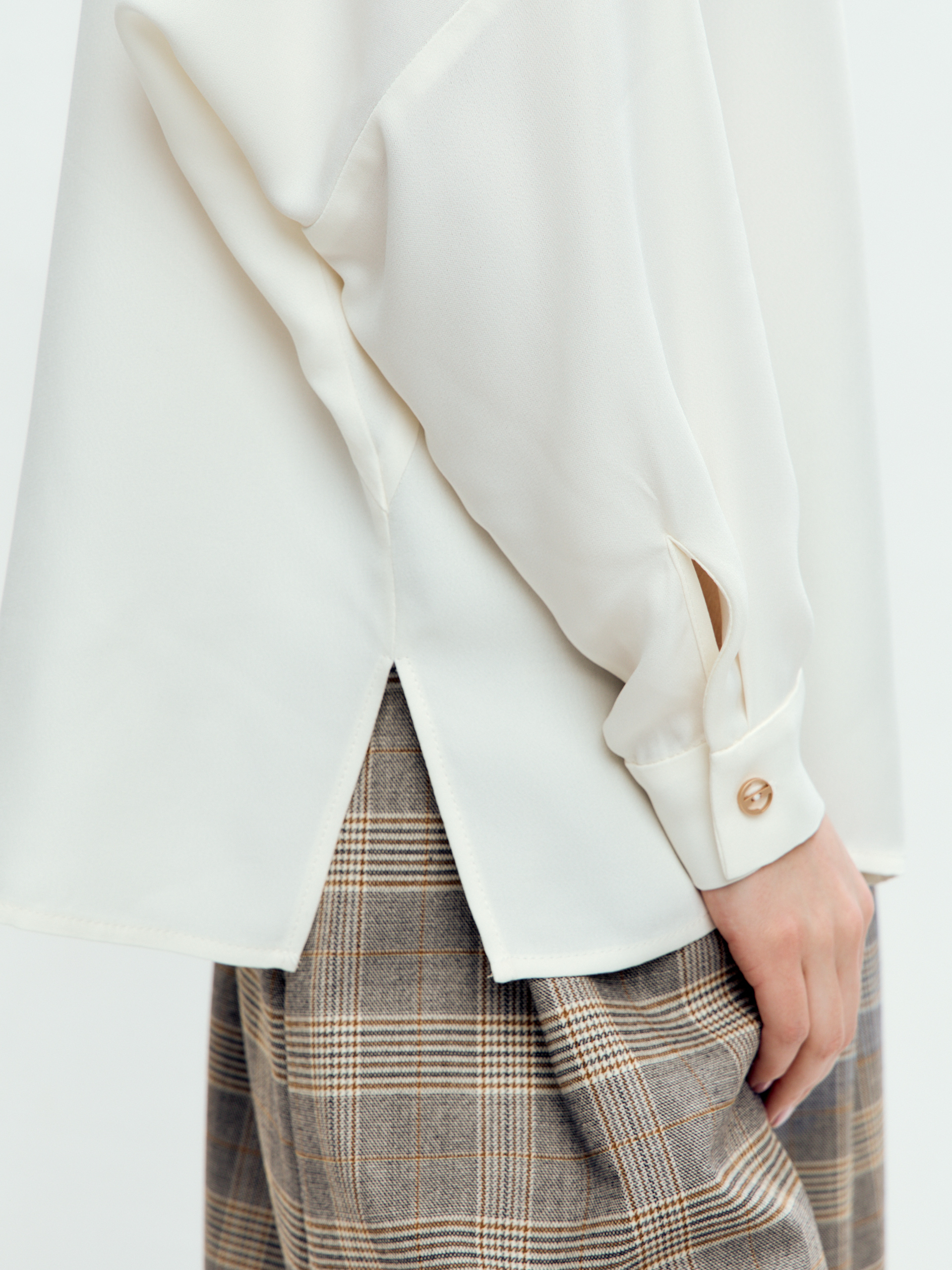 Блуза сочетается с брюками, джинсами, юбками.
