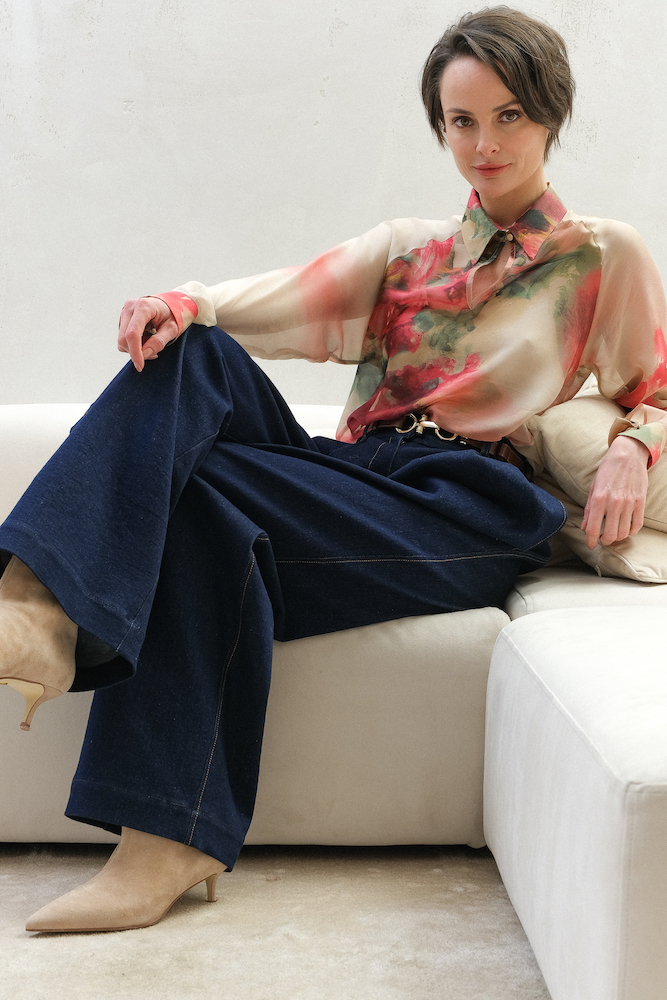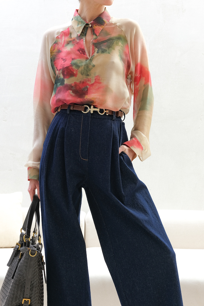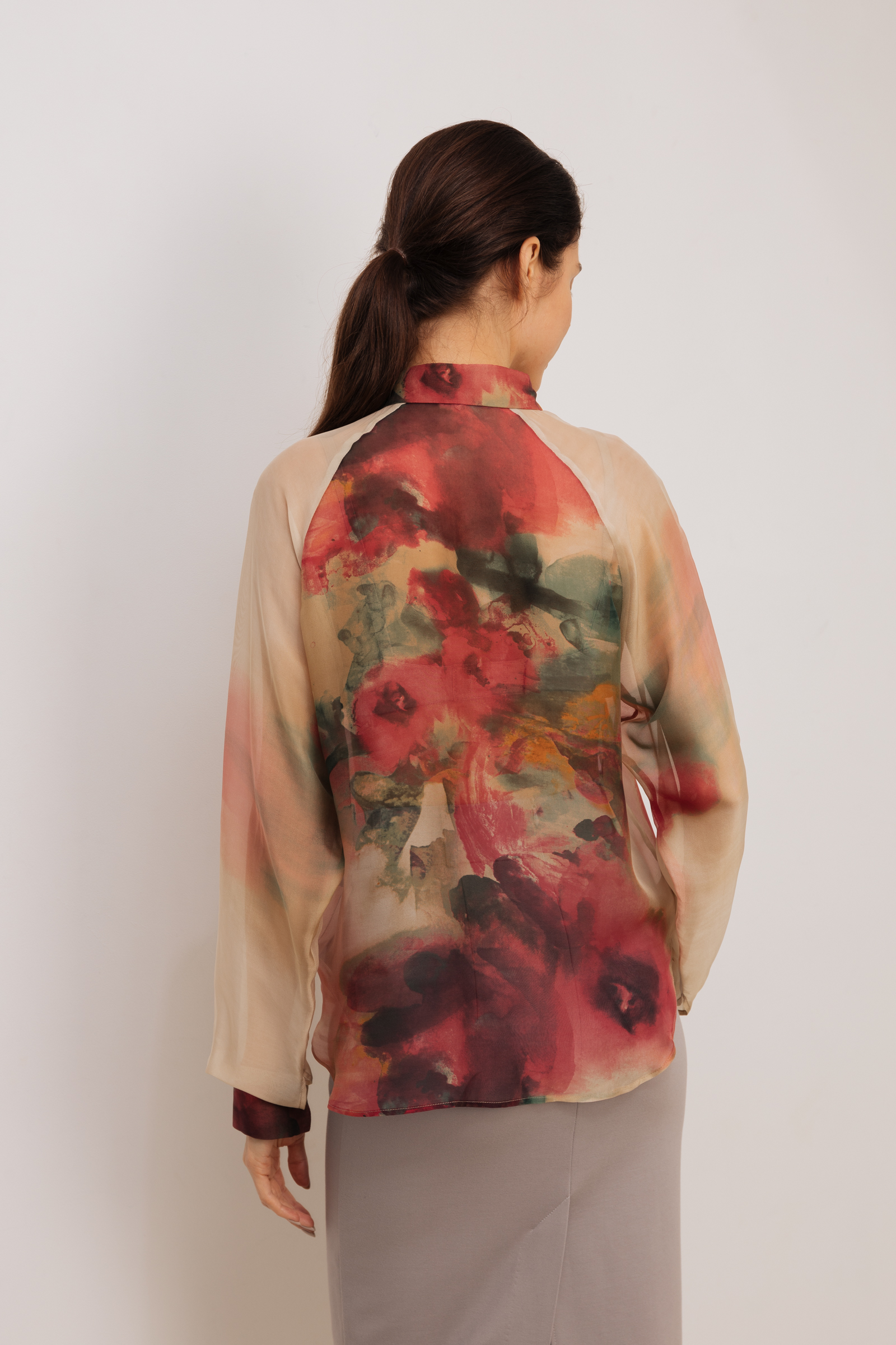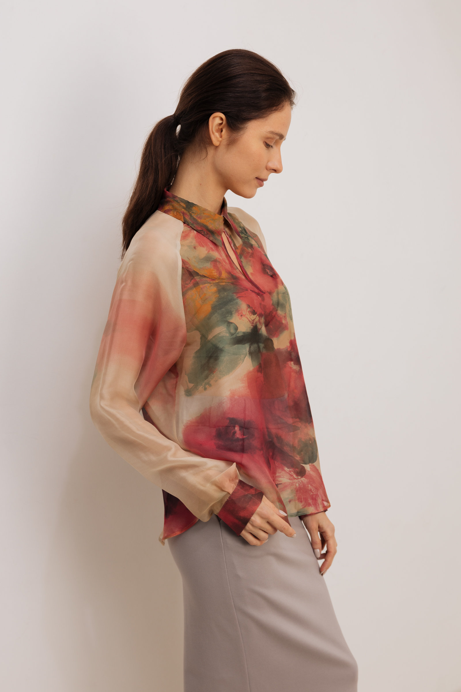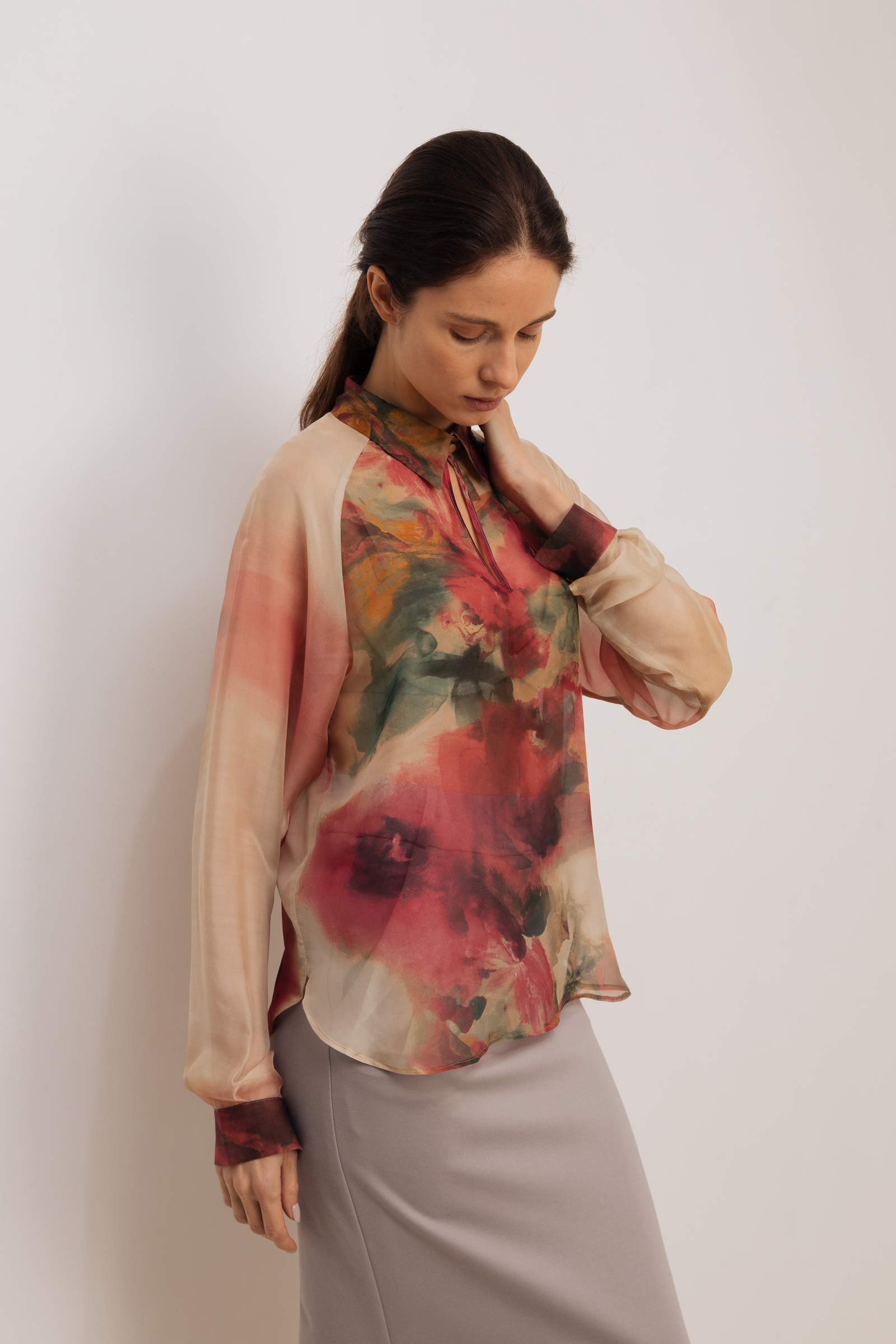 100% шёлк. Воздушная и невесомая блузка из итальянского шёлка. Воплощение романтики, блуза с цветочным принтом, словно вуаль, обволакивает нежностью и намекает на силуэт.