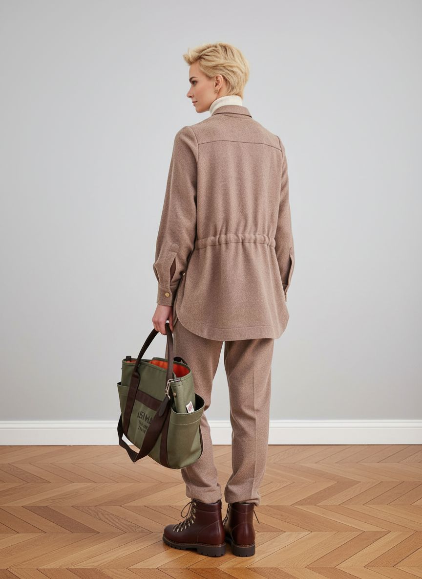 Силуэт А-образный, свободный. Плечо анатомическое, рукав в полную длину, завершается манжетой и шлицей, как в мужской рубашке. Длина рубашки до середины бедра, лекальный низ. На талии кулиса, с её помощью можно менять силуэт от приталенного до свободного. Комбинируйте с брюками Сhili, создавая костюм. Добавляйте в образ водолазку, футболку, вторую рубашку из хлопка.