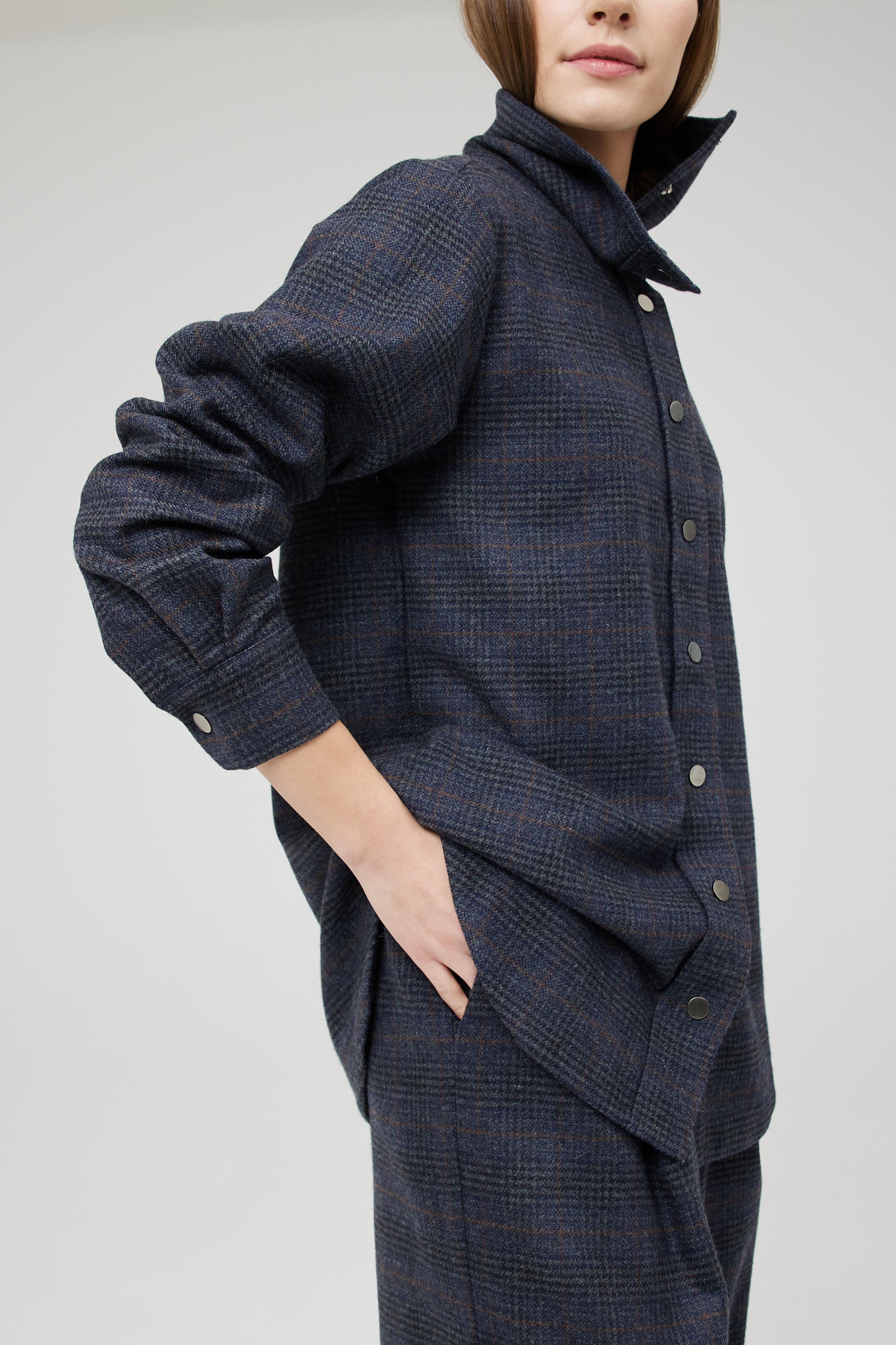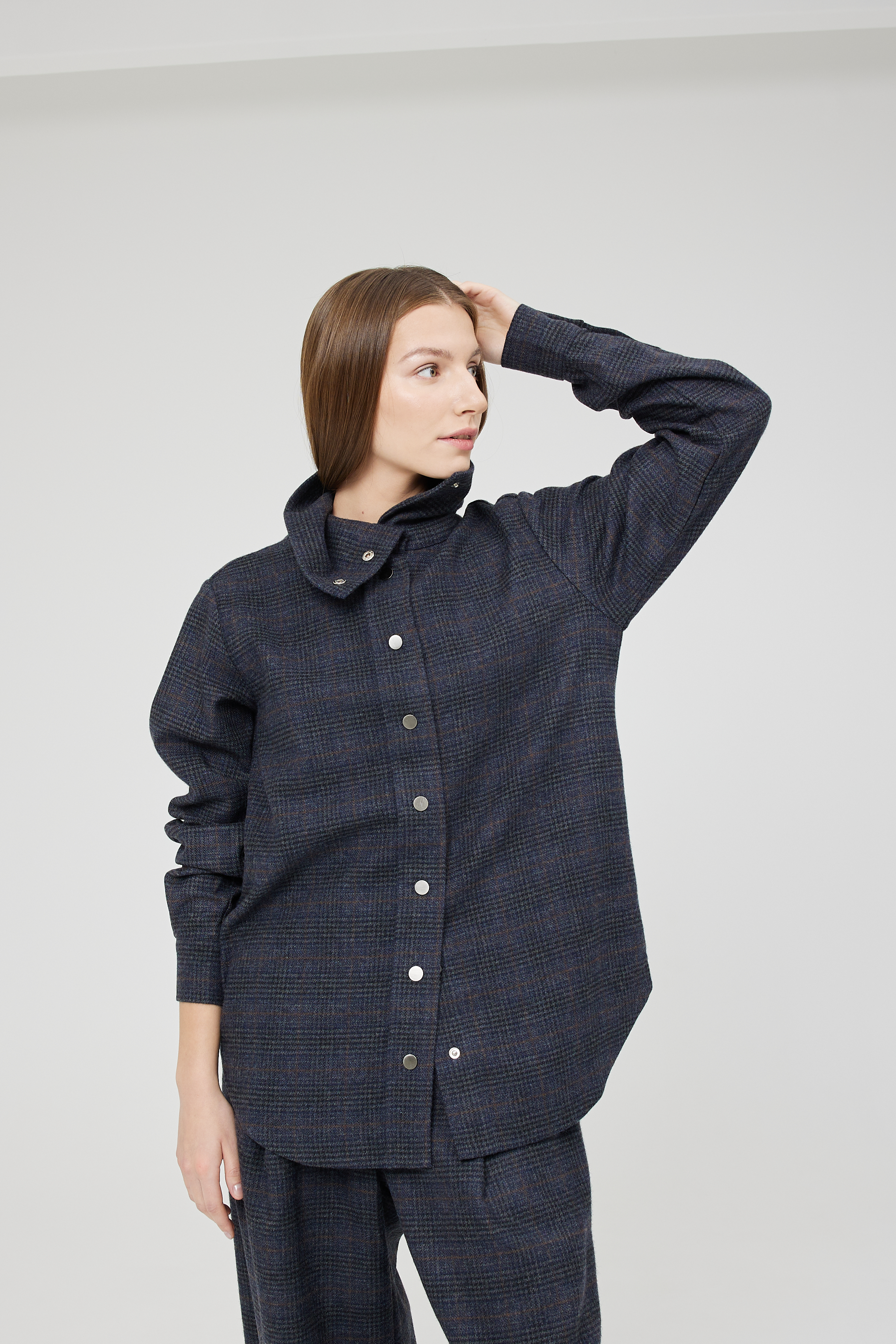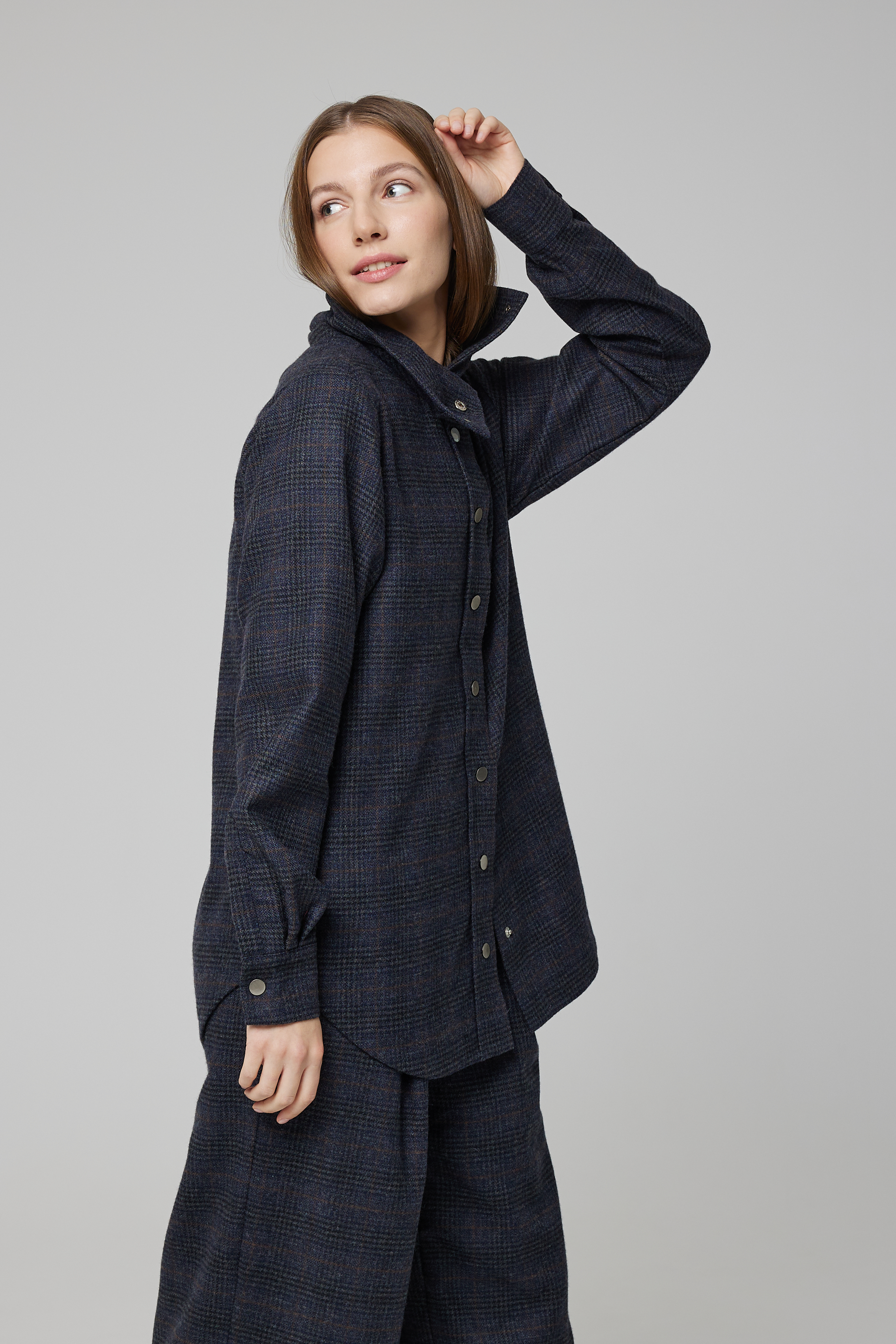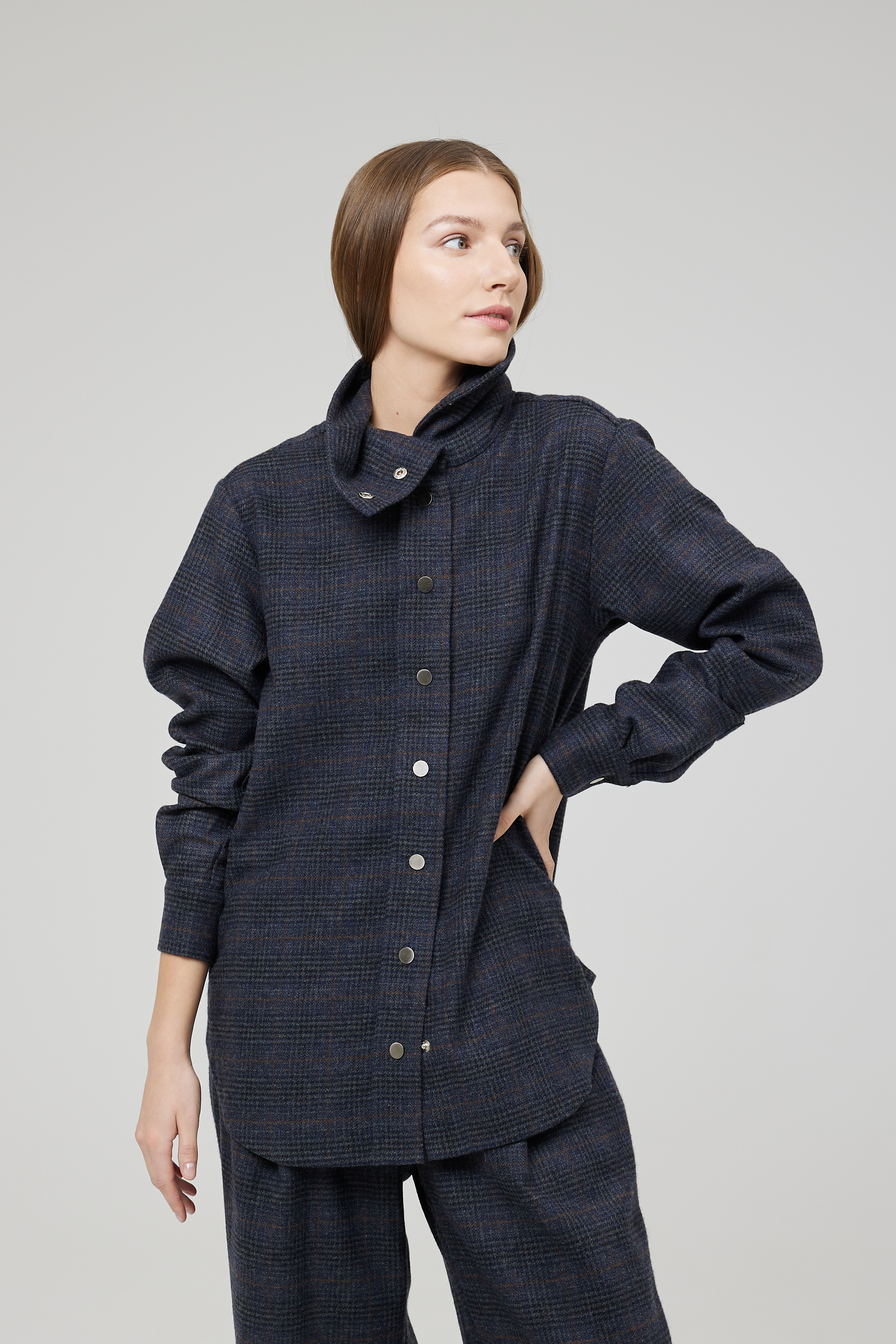 Высокий воротник, прямой силуэт, свободный крой - в рубашке словно в тёплом пледе, комфортно, тепло и мягко. Длина до середины бедра, лекальный низ.
