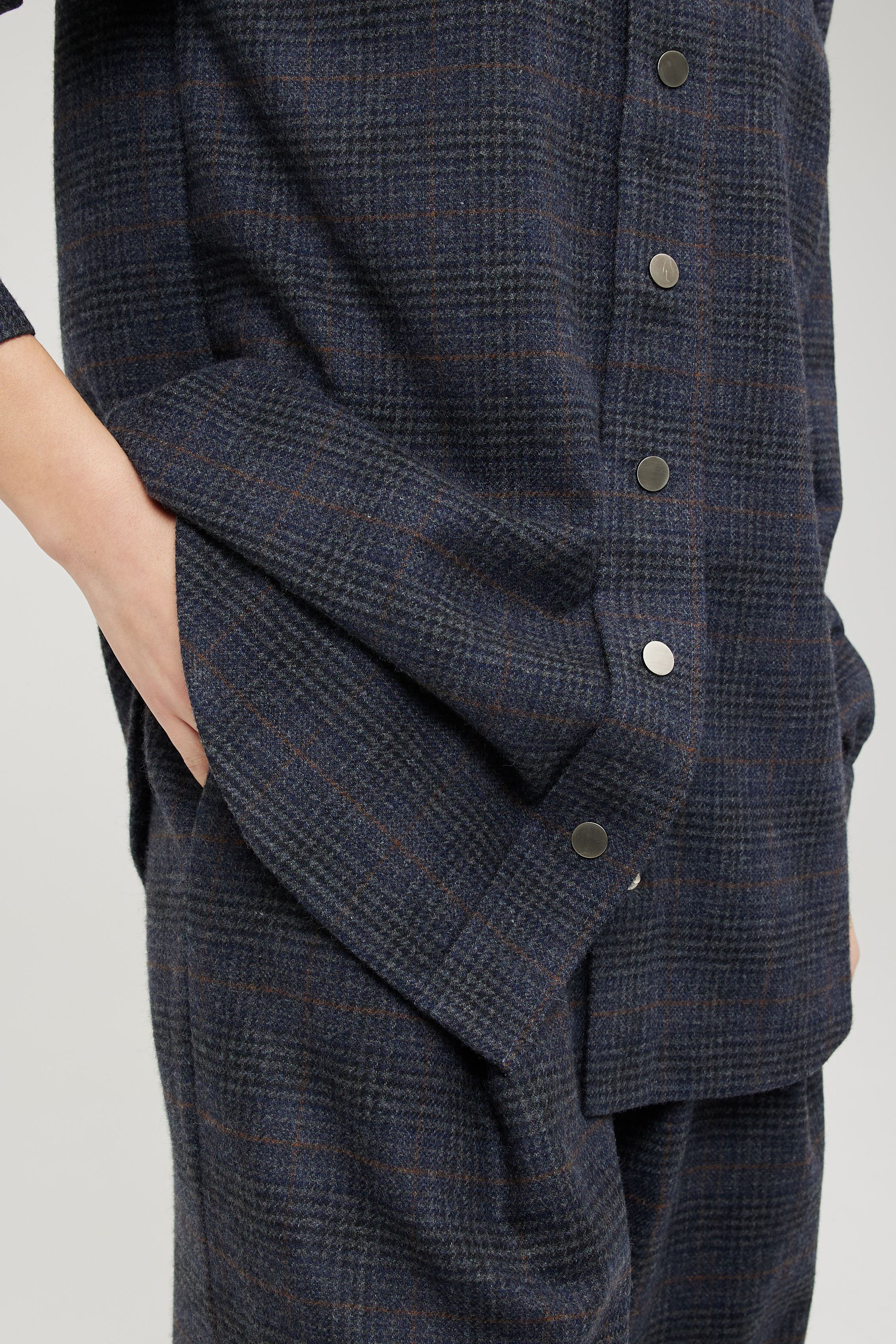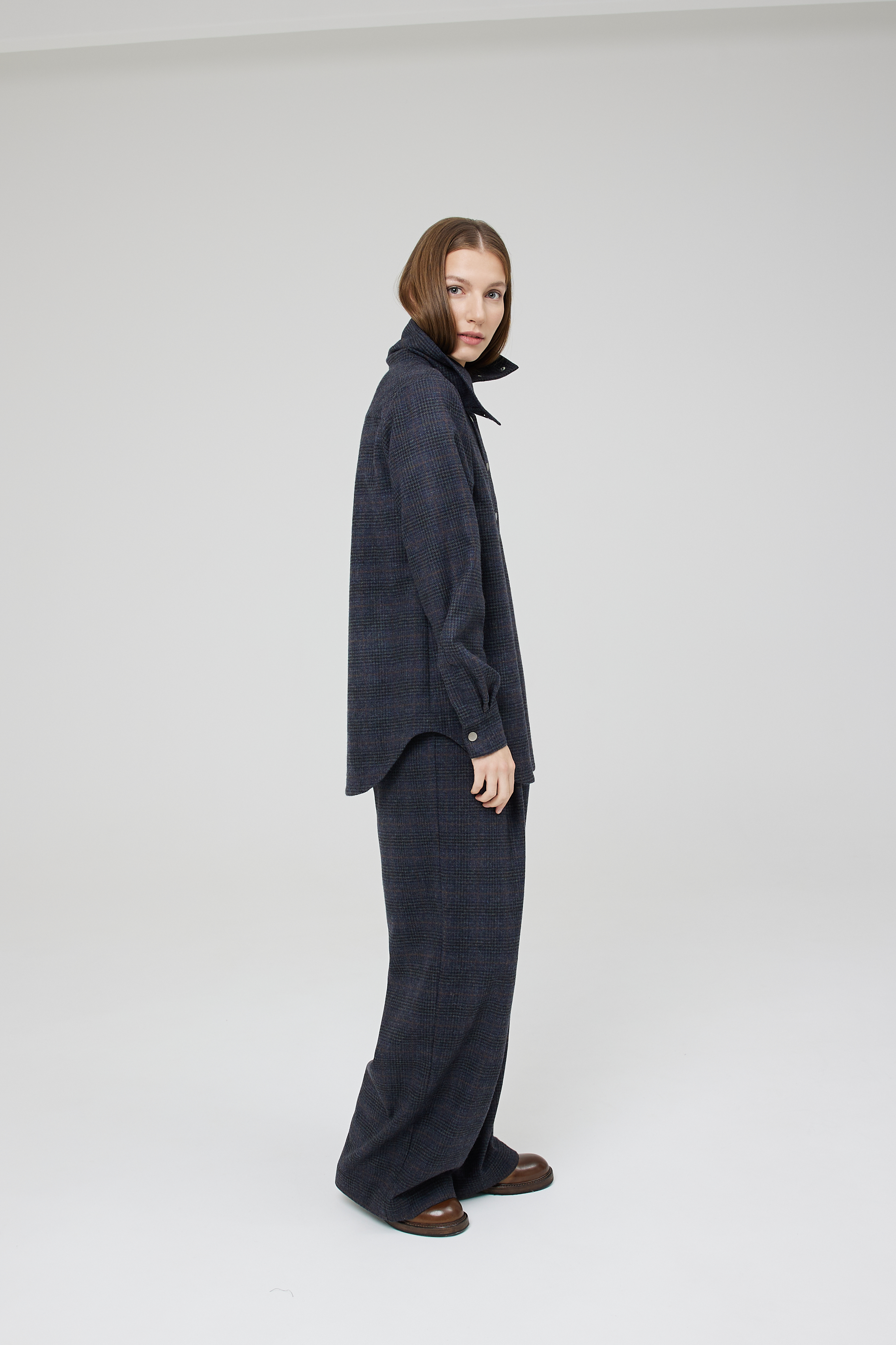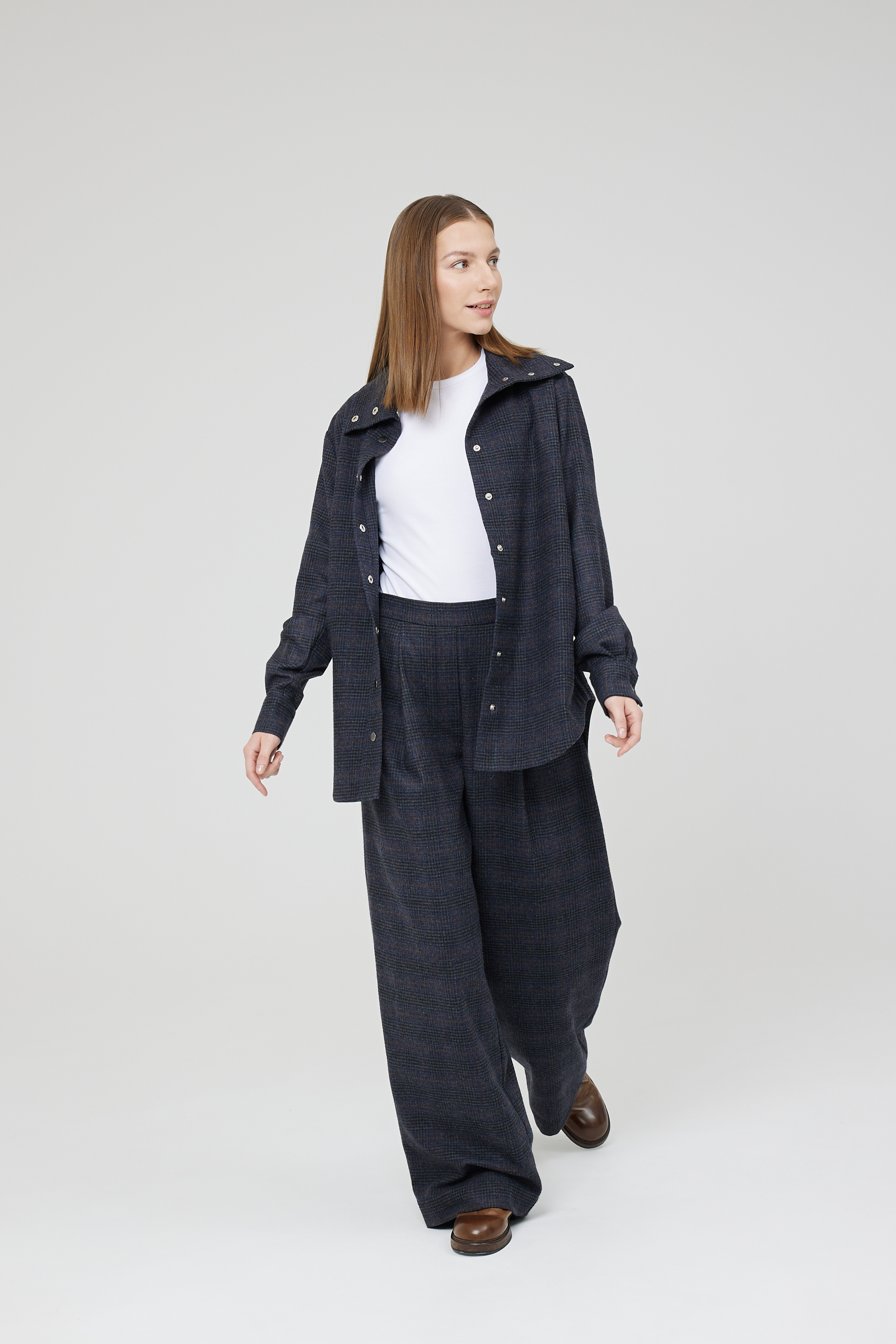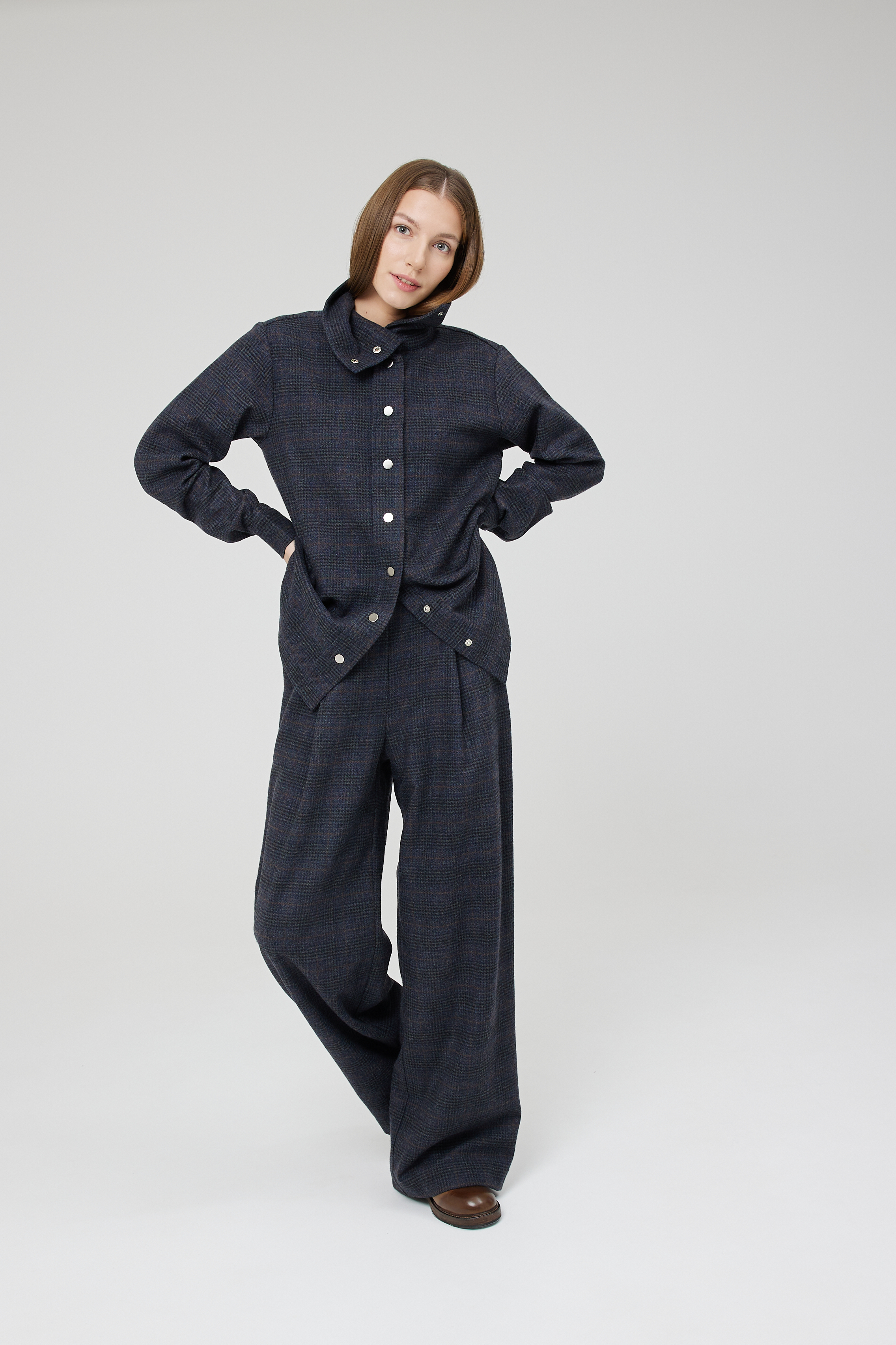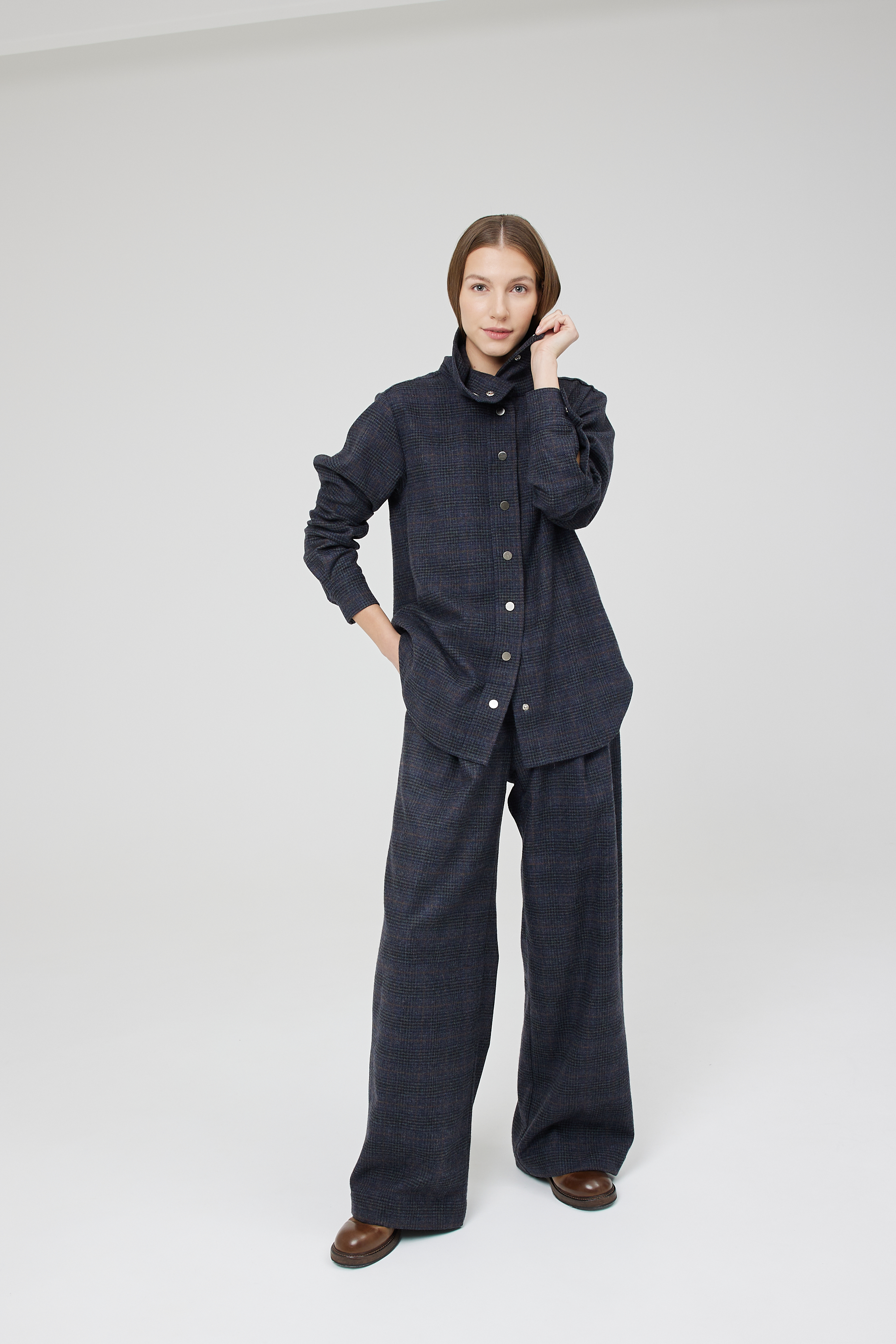 Высокий воротник, прямой силуэт, свободный крой - в рубашке словно в тёплом пледе, комфортно, тепло и мягко. Длина до середины бедра, лекальный низ.