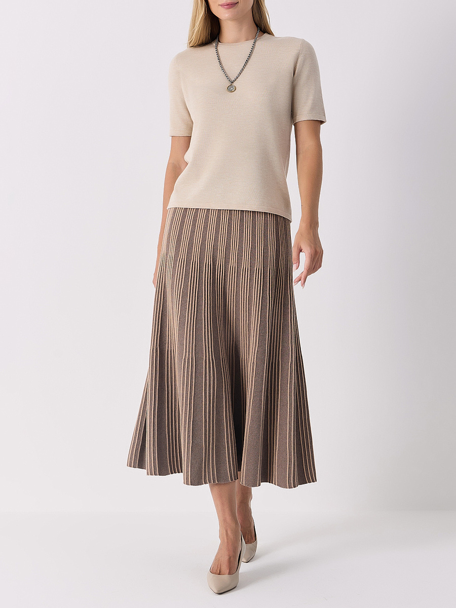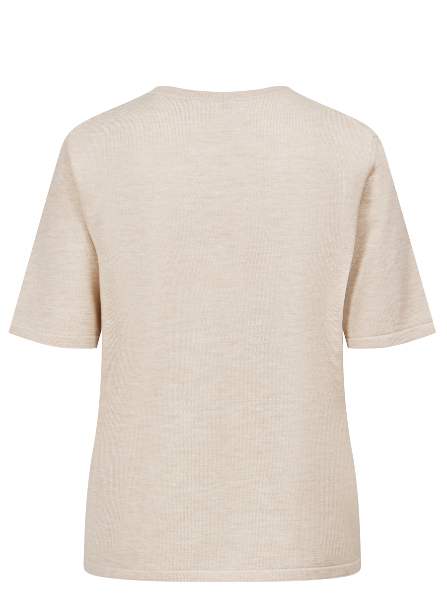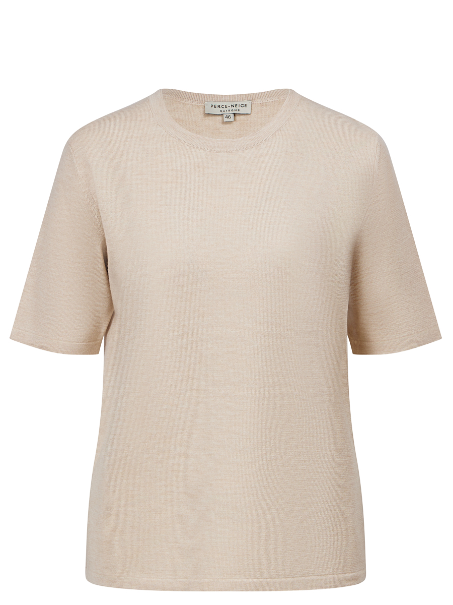 Бежевый джемпер из нежной шерсти мериноса от PERCE-NEIGE. Модель полуприлегающего кроя с короткими рукавами, круглым вырезом горловины. Джемпер дополнит базовые повседневные образы с брюками, юбками или джинсами.