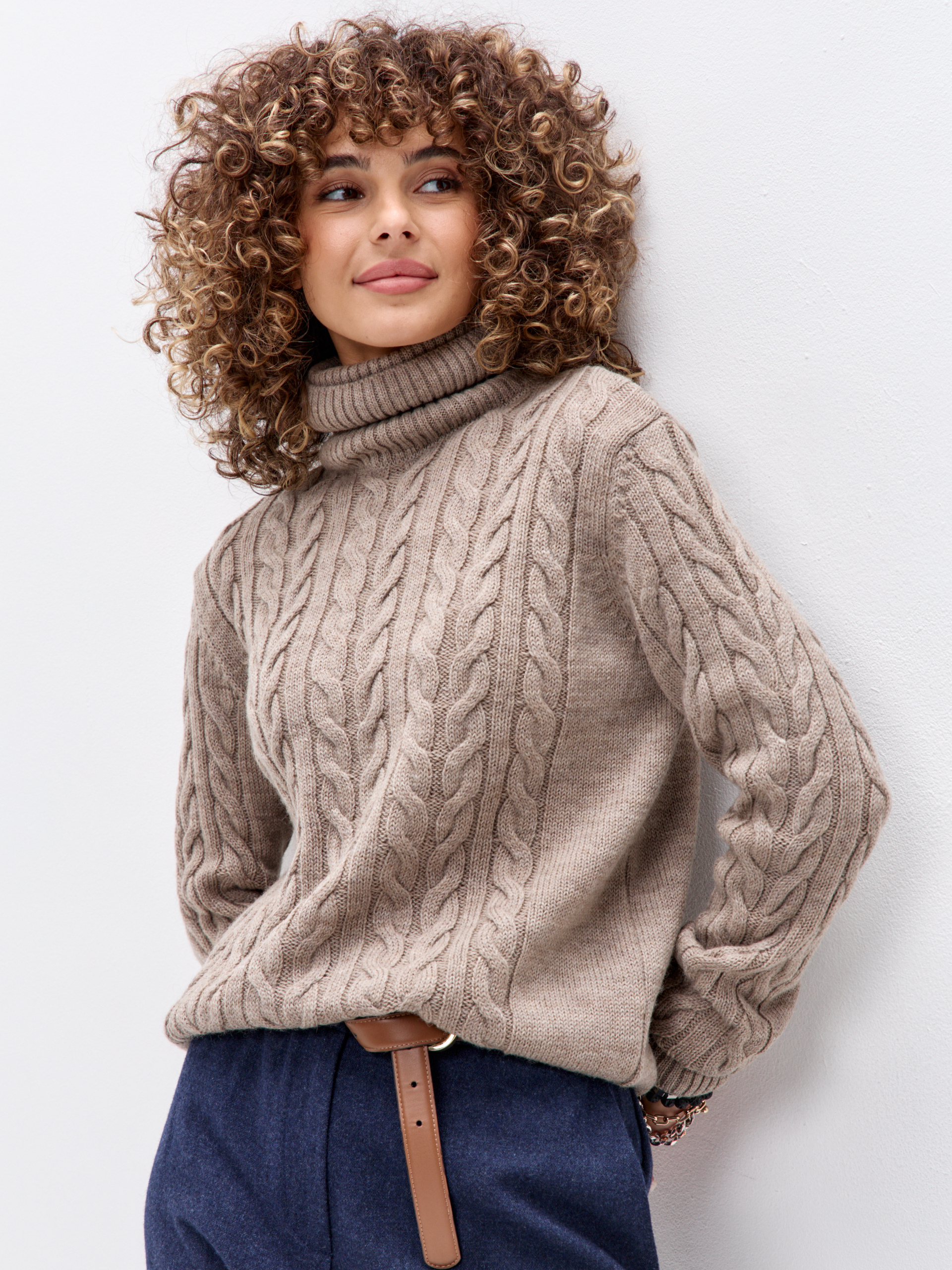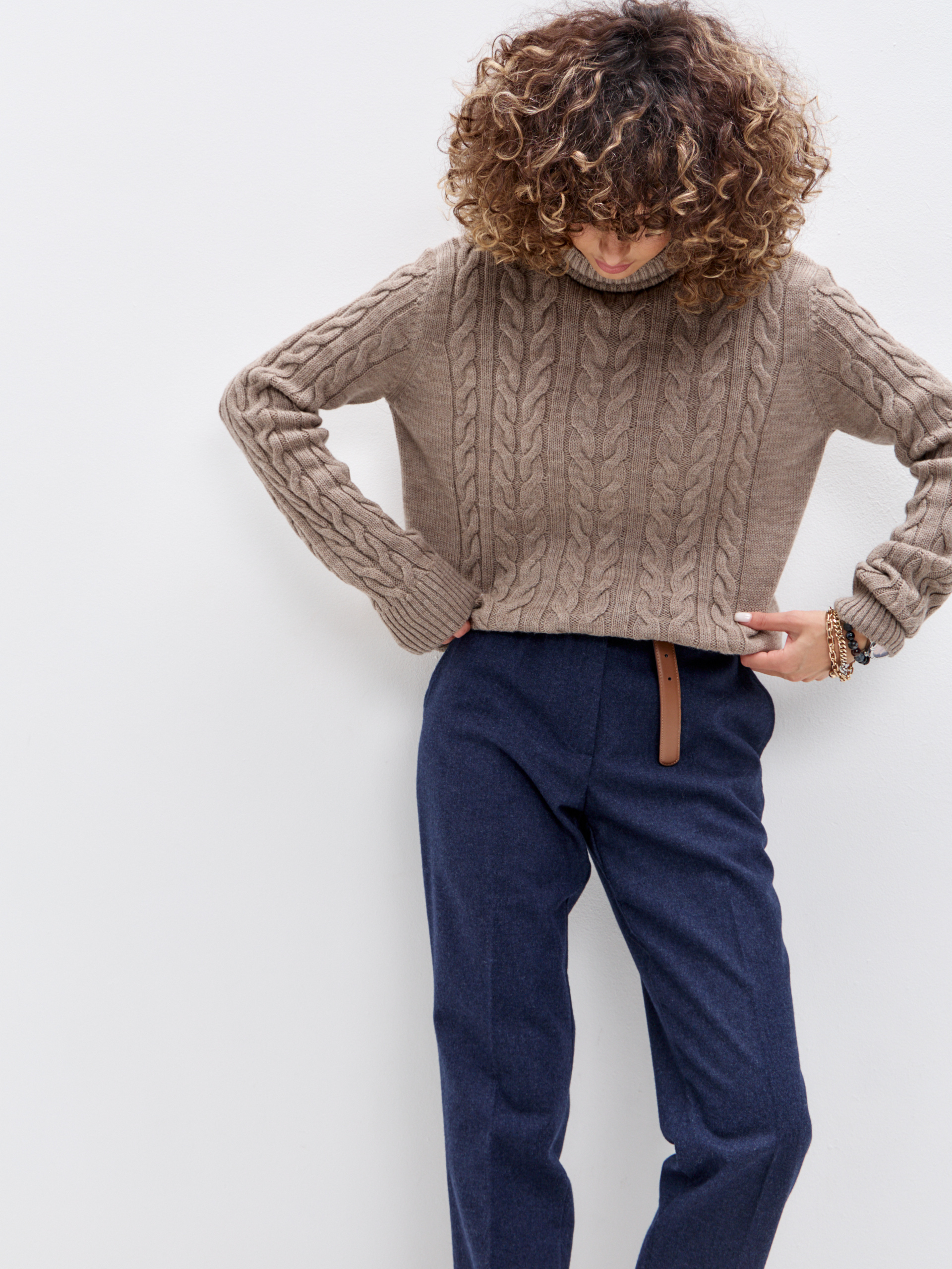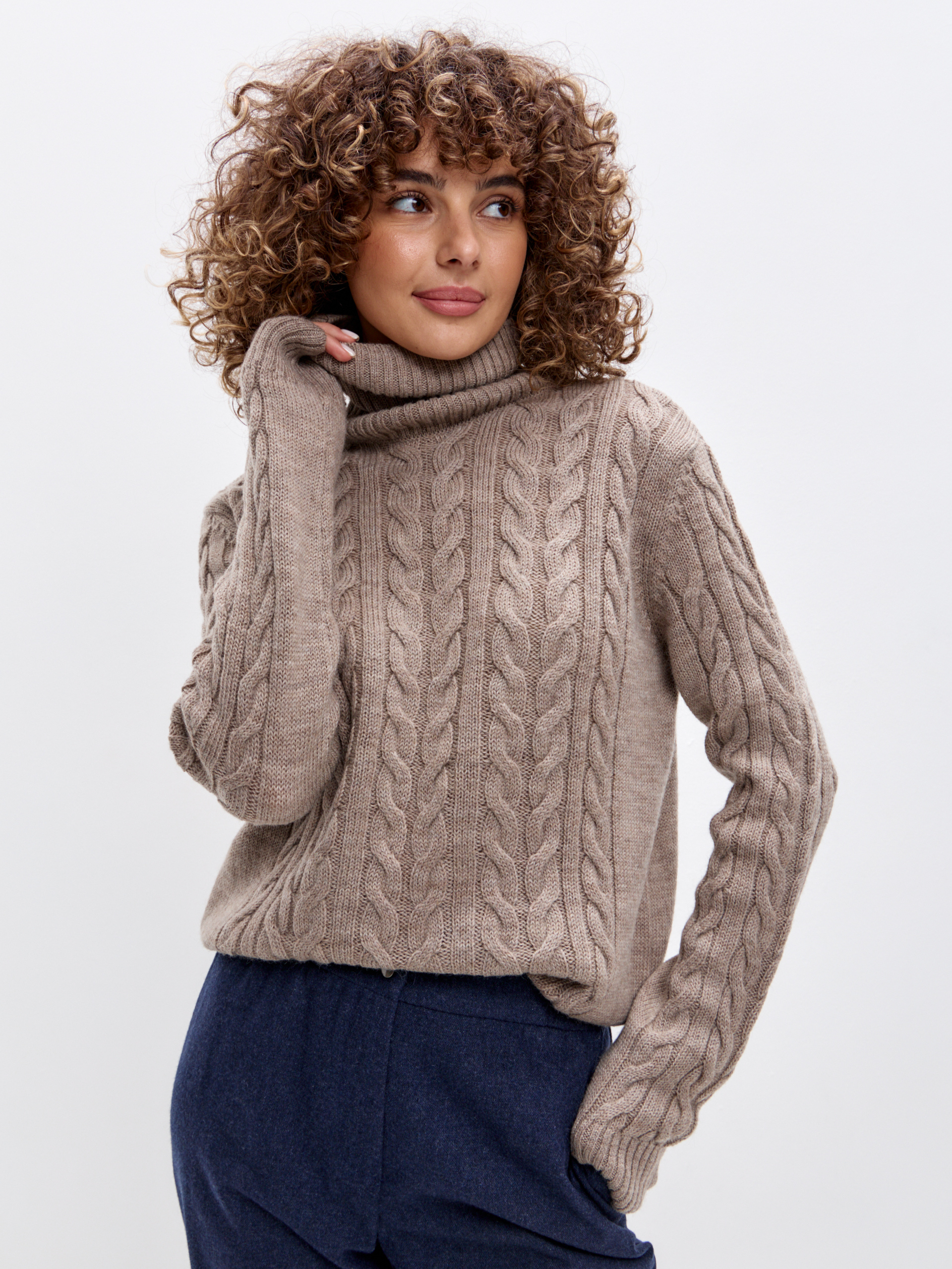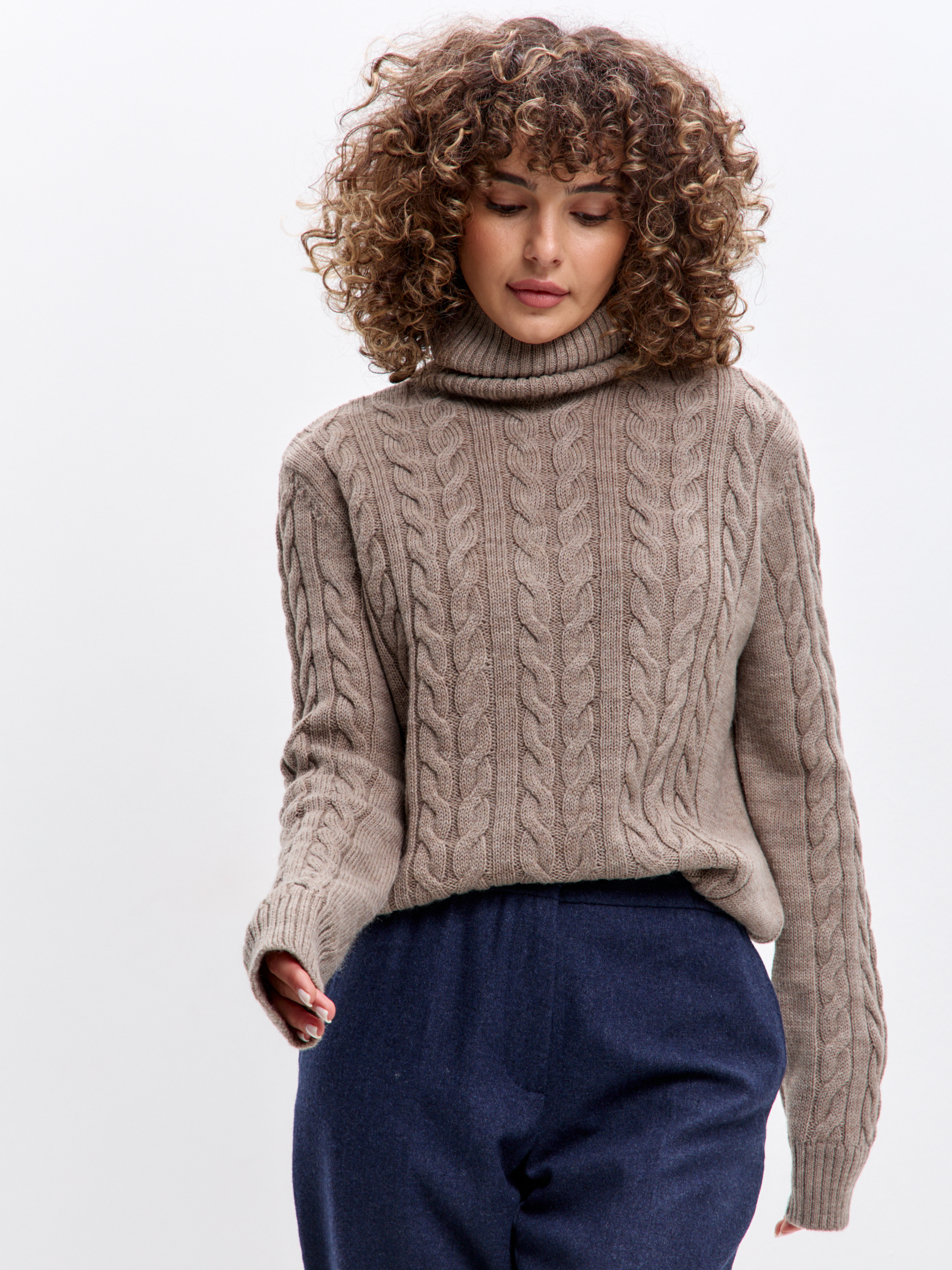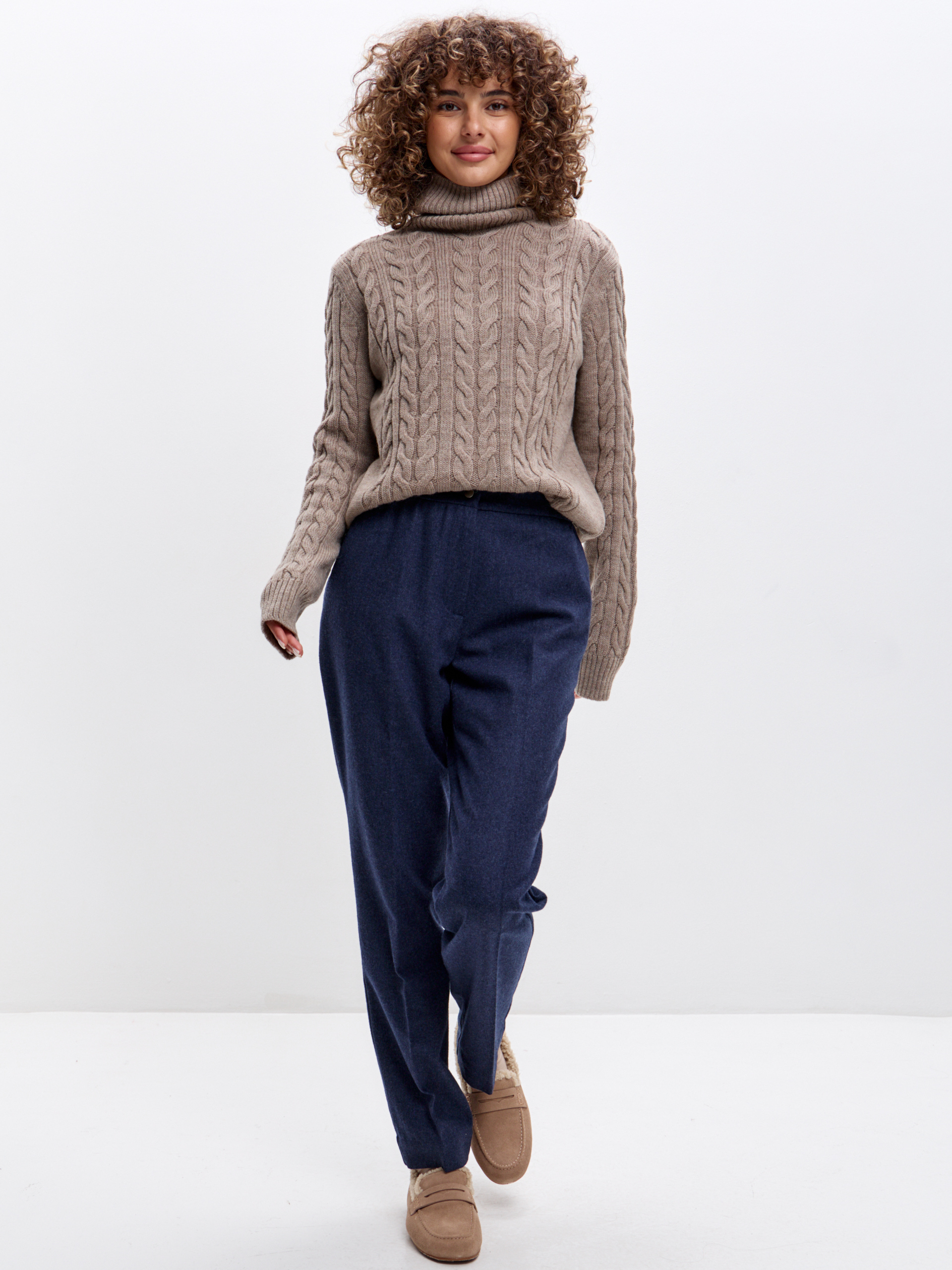 Свитер представлен в двух цветах, чернильно-синем и песочном.