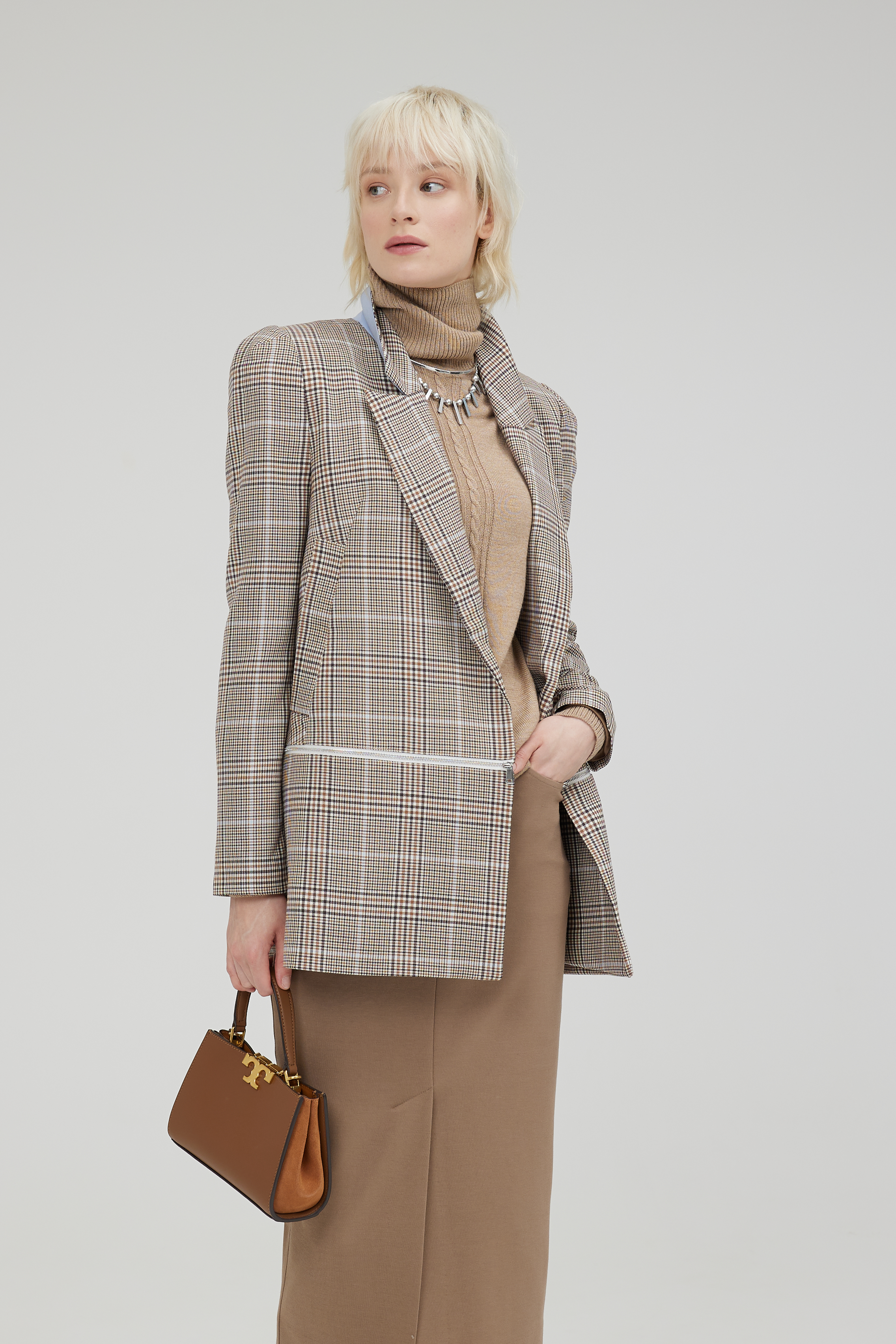 Жакет - для смелой индивидуальной личности. Все тренды в одном: клетка, рукав буф, трансформер. Части пиджака соединяются металлической молнией. Жакет двубортный, застёгивается на два усиленных магнита.